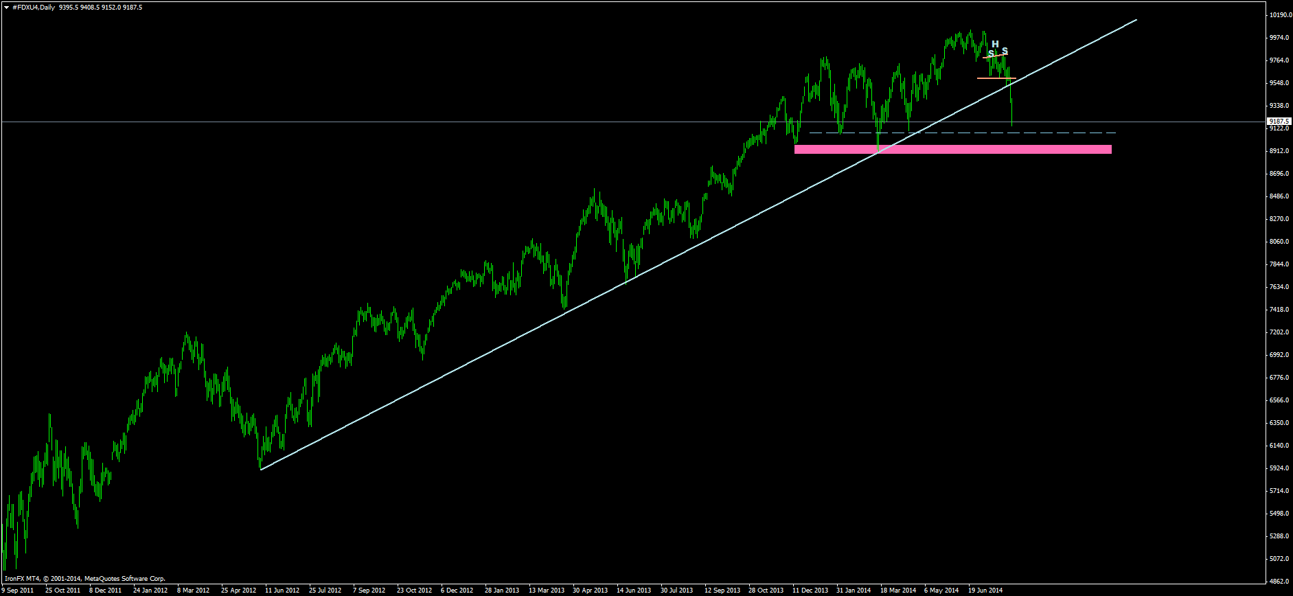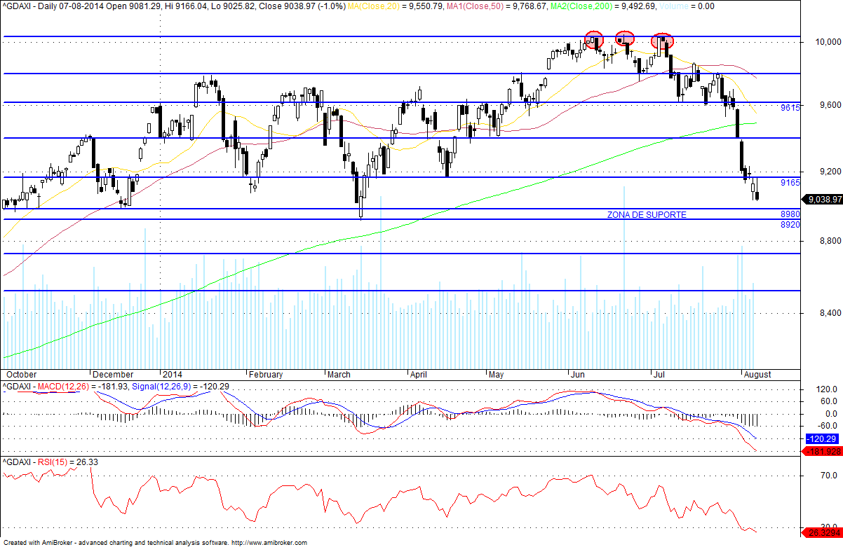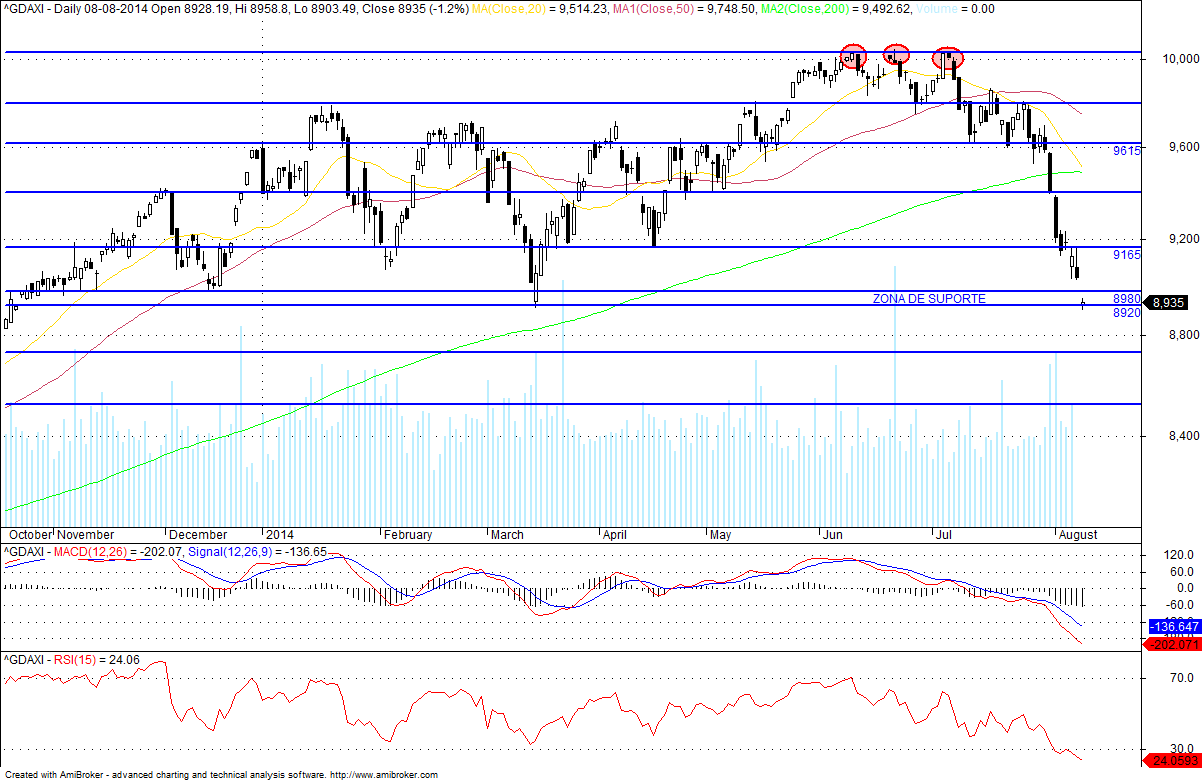 O Dax está a ficar bonitinho, a linha de tendência já foi ao ar, e agora está a testar uma importante zona de suporte, se esta zona de suporte for ao ar
