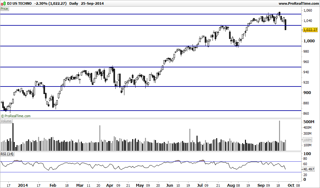 Entretanto a Apple parece estar a lateralizar os movimentos recentes de subida parece terem descontado a expectativa sobre o sucesso do lançamento da nova gama de iPhones agora deve estar á espera de resultados concretos em termos de vendas, por outras palavras a ganhar momentum.