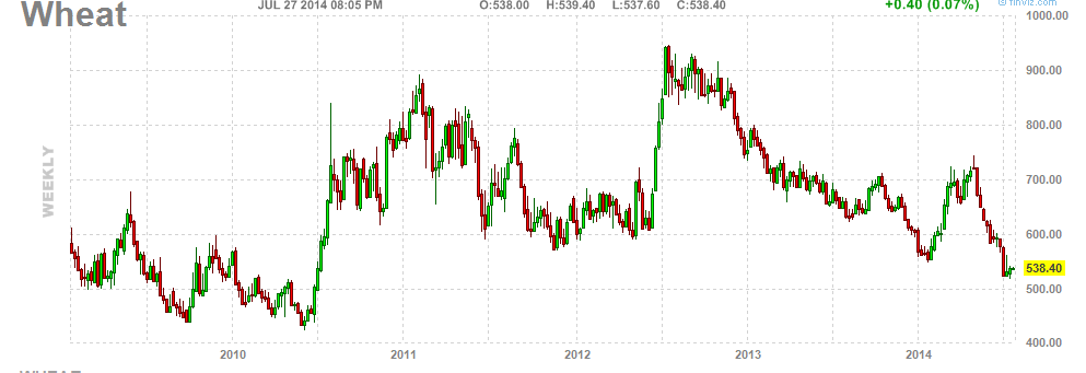 O trigo está em cima do suporte dos últimos 5 anos...