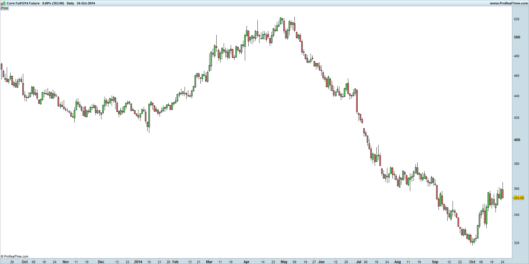 Eu depois de ter perdido num trade a tentar estar bull no milho (aquele possivel fundo areedondado parecia mel), inverti a posição e já ganho algum estando short no milho. Parece-me que os 400 são um target atingivel.