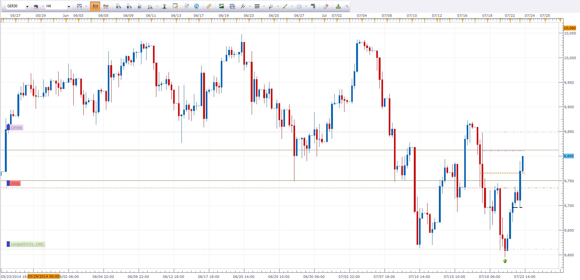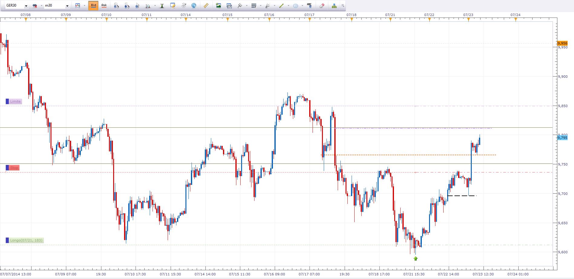 Longo fechado a 9780 está sem força para andar, estou fora e a ponderar um curto caso faça uma recuperação antes do fecho da Europa.