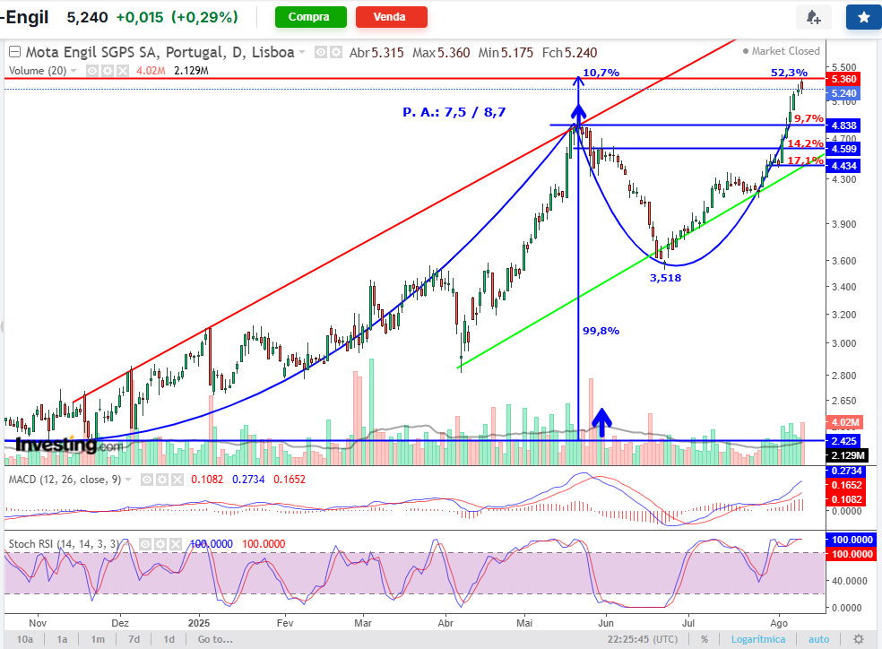 a nível fundamental 27 agosto vai ser importante para verificar qual o desempenho de 2025, e saber se a mota poderá romper a barreira dos €6 antes do final do ano.