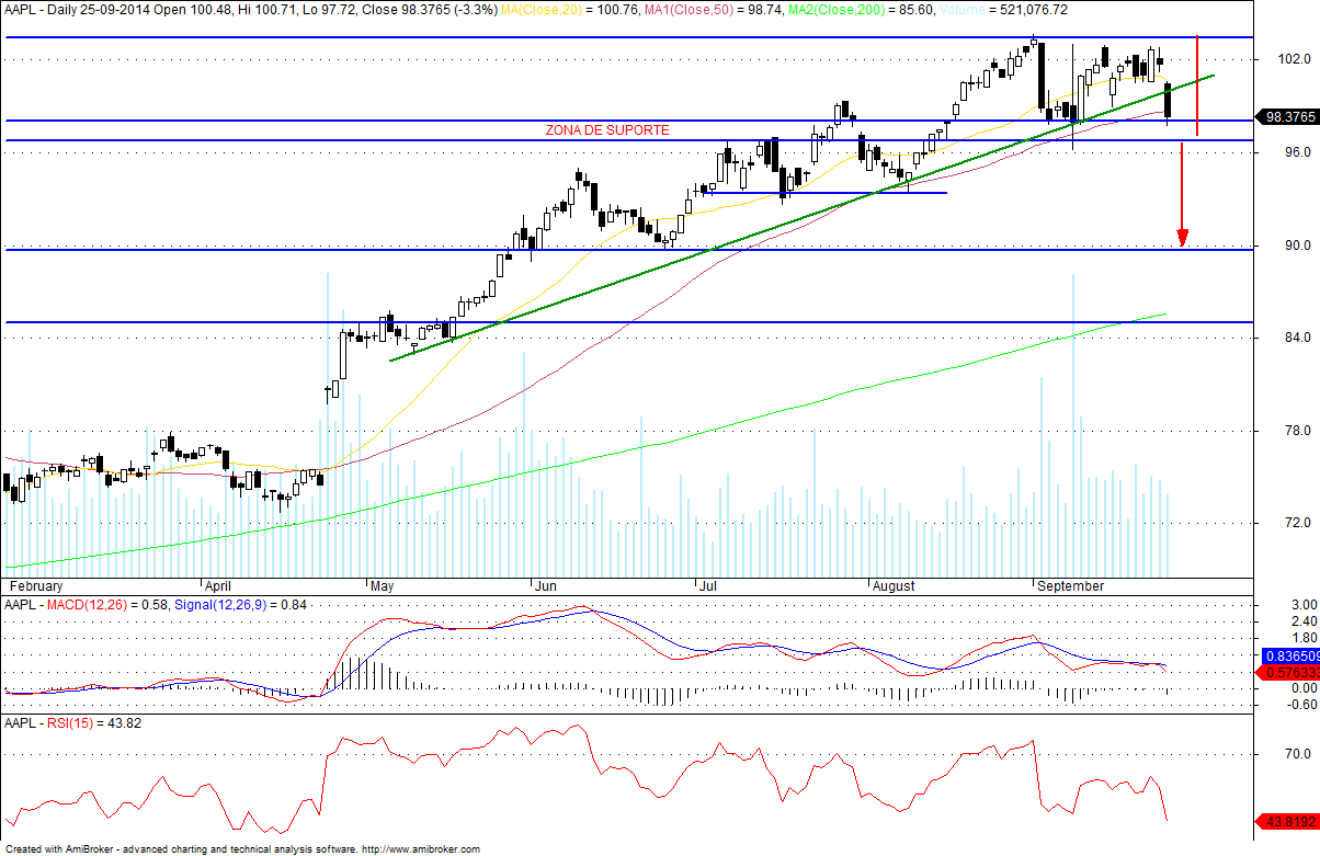A AAPL fechou marginalmente abaixo dos 98 US$. "Atão" e agora...?![]()