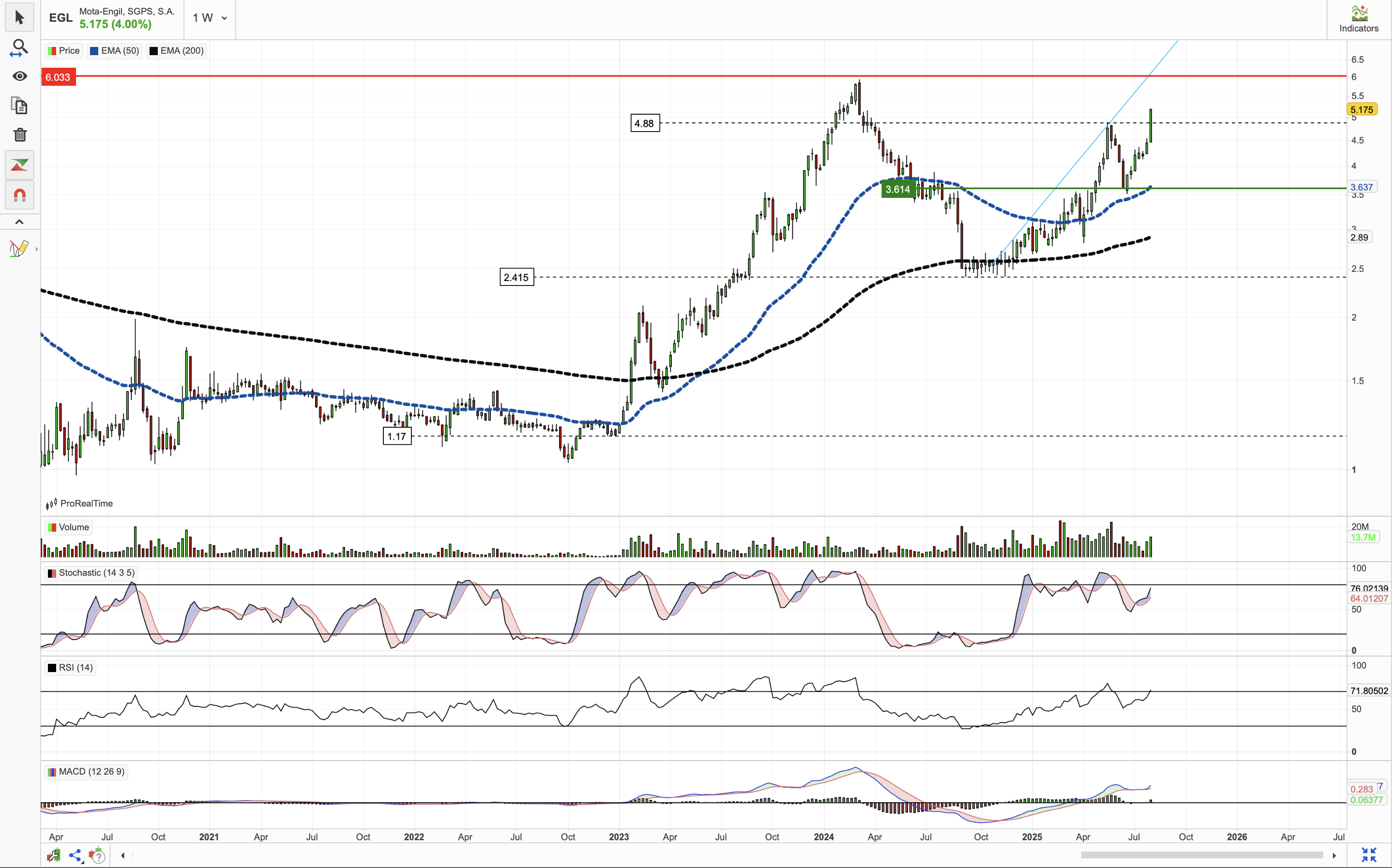 Pode estar já com boas subidas mas pelos indicadores tem folga para pe,o menos ir aos 5.80 -6!