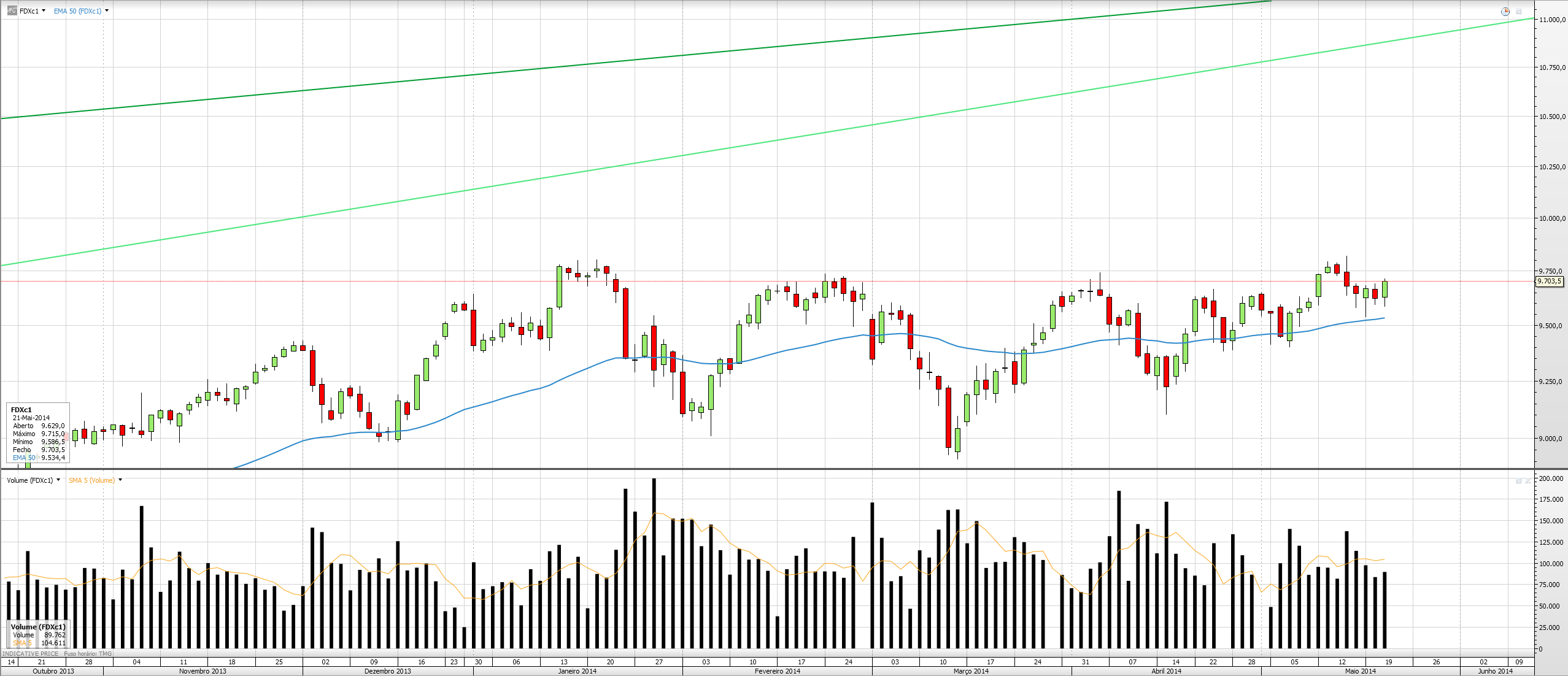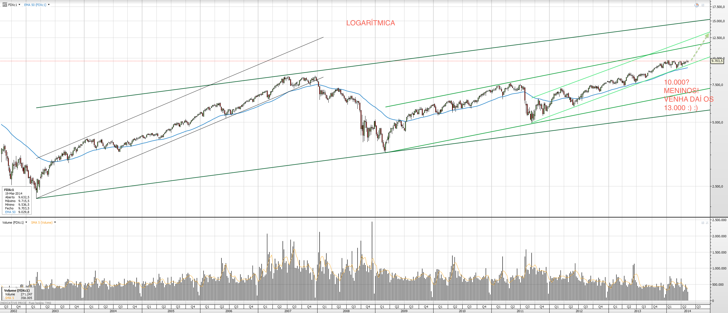O plano mantém-se, ou seja, espero ver o target projetado da semana algures nos 9750 (topo do meu triângulo postado no inicio da semana).