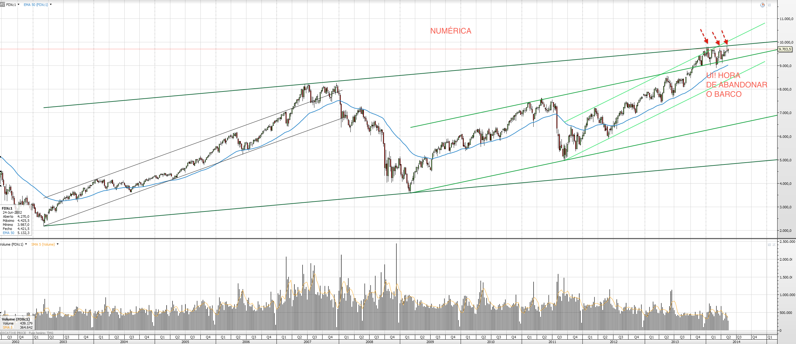 )O plano mantém-se, ou seja, espero ver o target projetado da semana algures nos 9750 (topo do meu triângulo postado no inicio da semana).