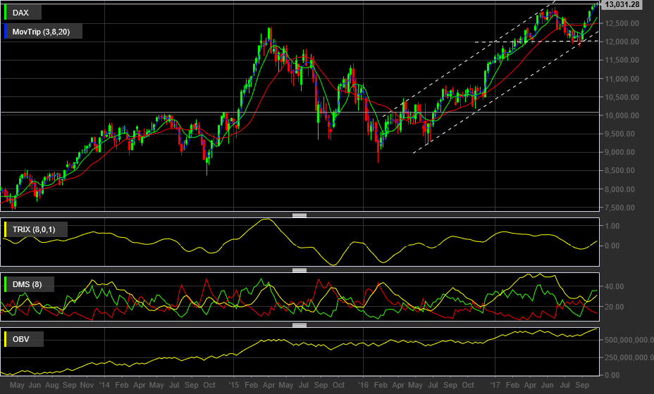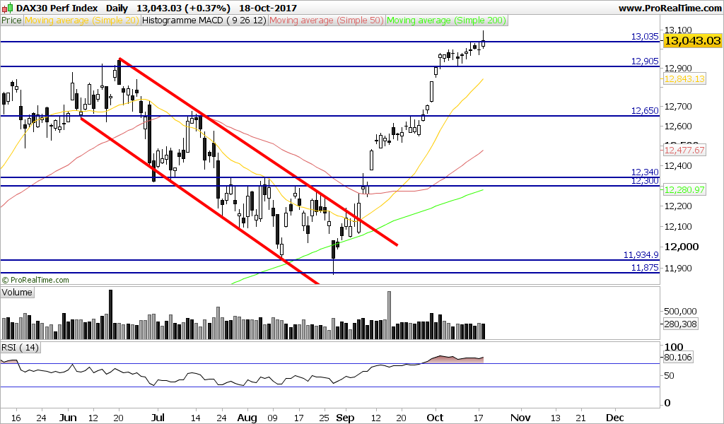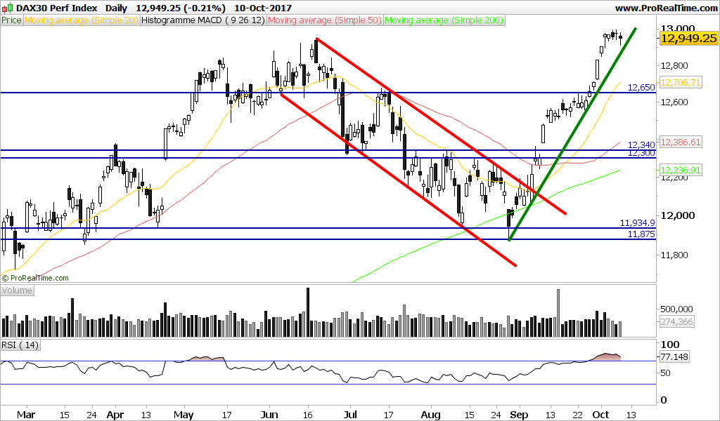 DAX está neste momento a testar o 1º suporte na zona 12930.