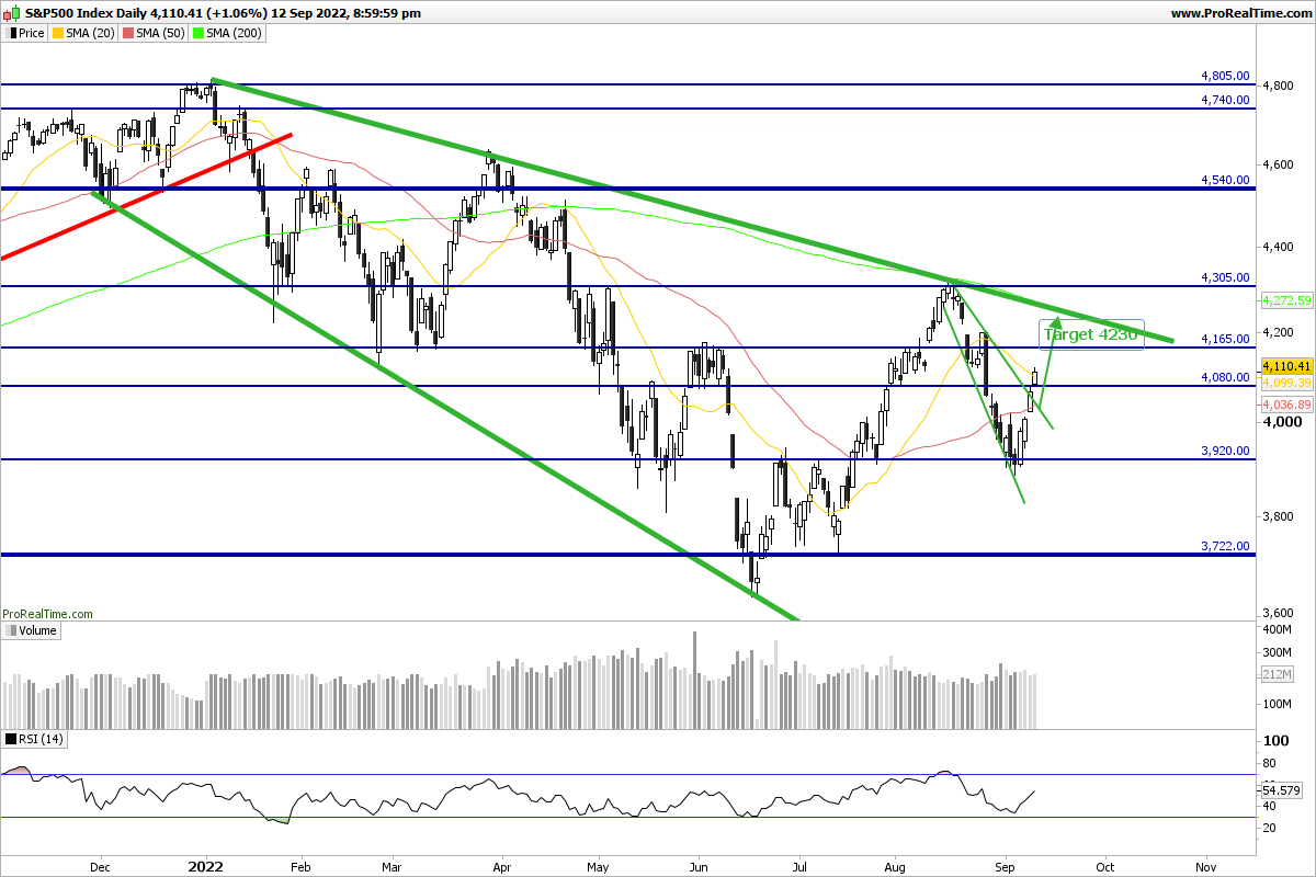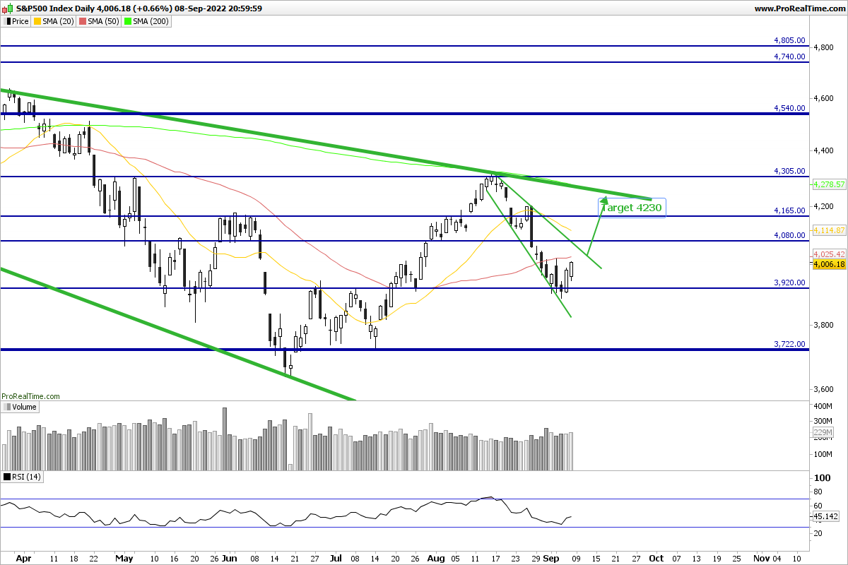 Se considerarmos o indice numa tendência descendente, a zona dos 4165 é uma resistência relativamente forte, e poderá não ter força para a quebrar e subir apenas mais 2% até aos 4230.