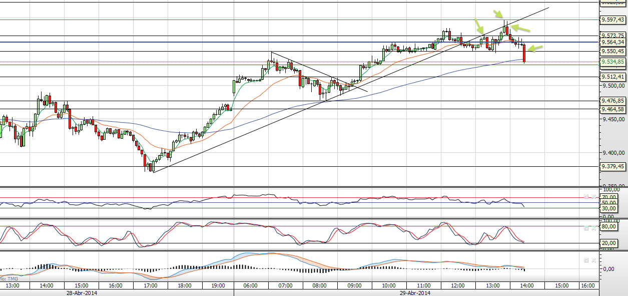 No caso de isto vir aliviar, como parece que possa vir a fazer, estes são os valores que tenho em mente como referência: 9550, 9530, 9515 (são visíveis o porquê no primeiro gráfico do post anterior).
