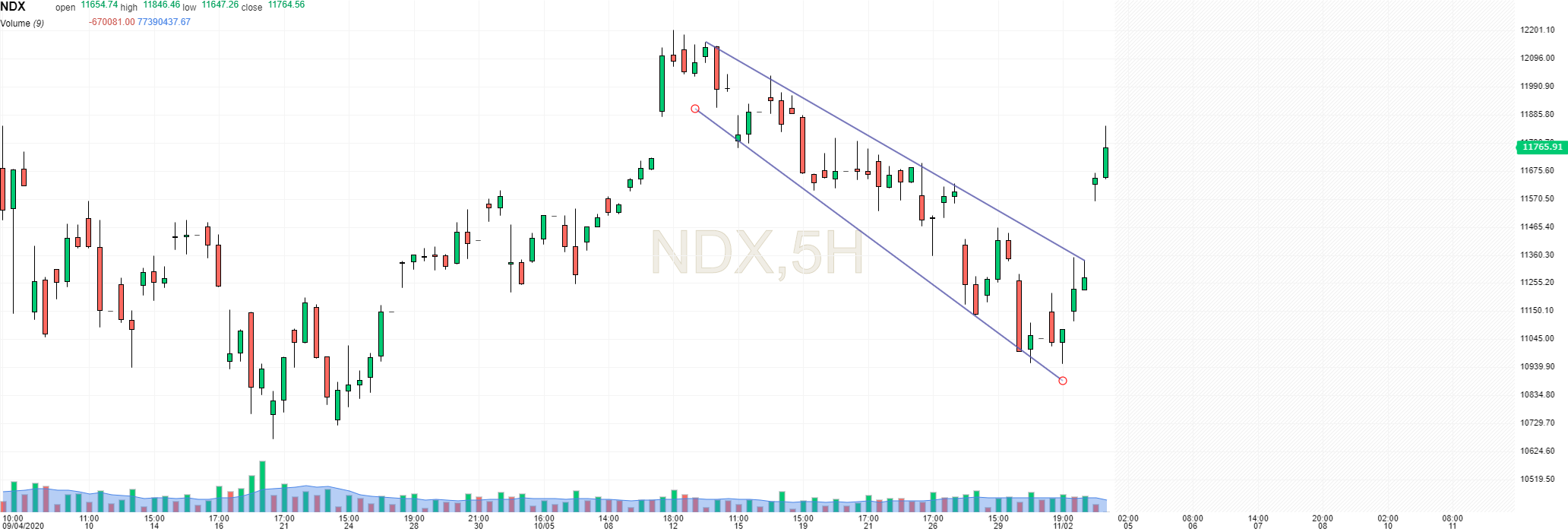 Parece-me que o pitchfork consegue dar uma visão mais limpa do gráfico nos NAS100.