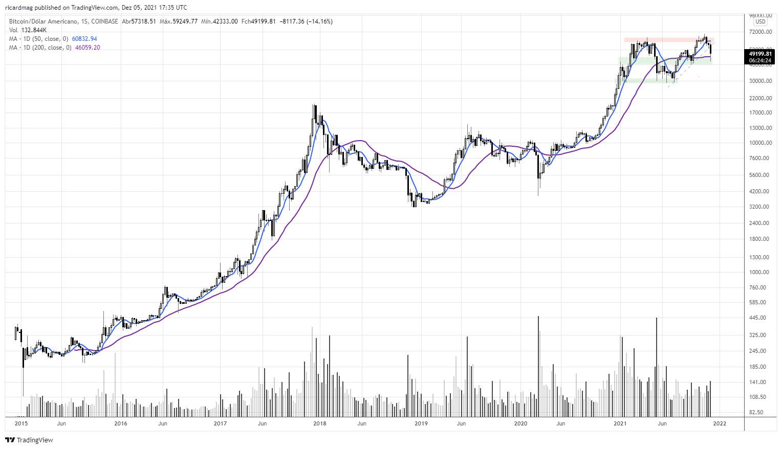 Acredito que o Bull Market LP se mantém intacto - acima de $40000 BTC - e que a "Mãe de todas as cryptos" possa atingir já em Janeiro novo máximo histórico nos $70.000 (Ethereum nos $5000)