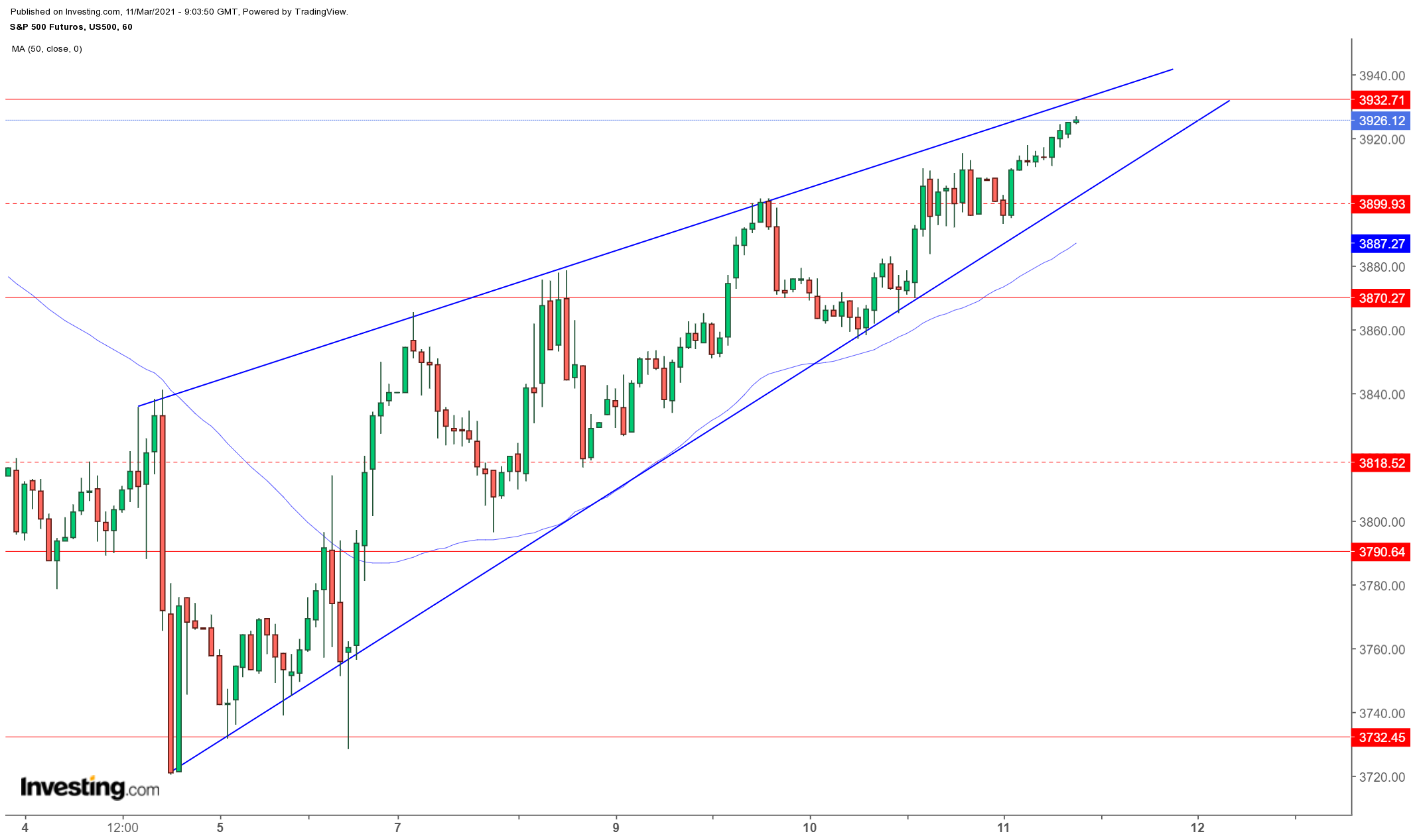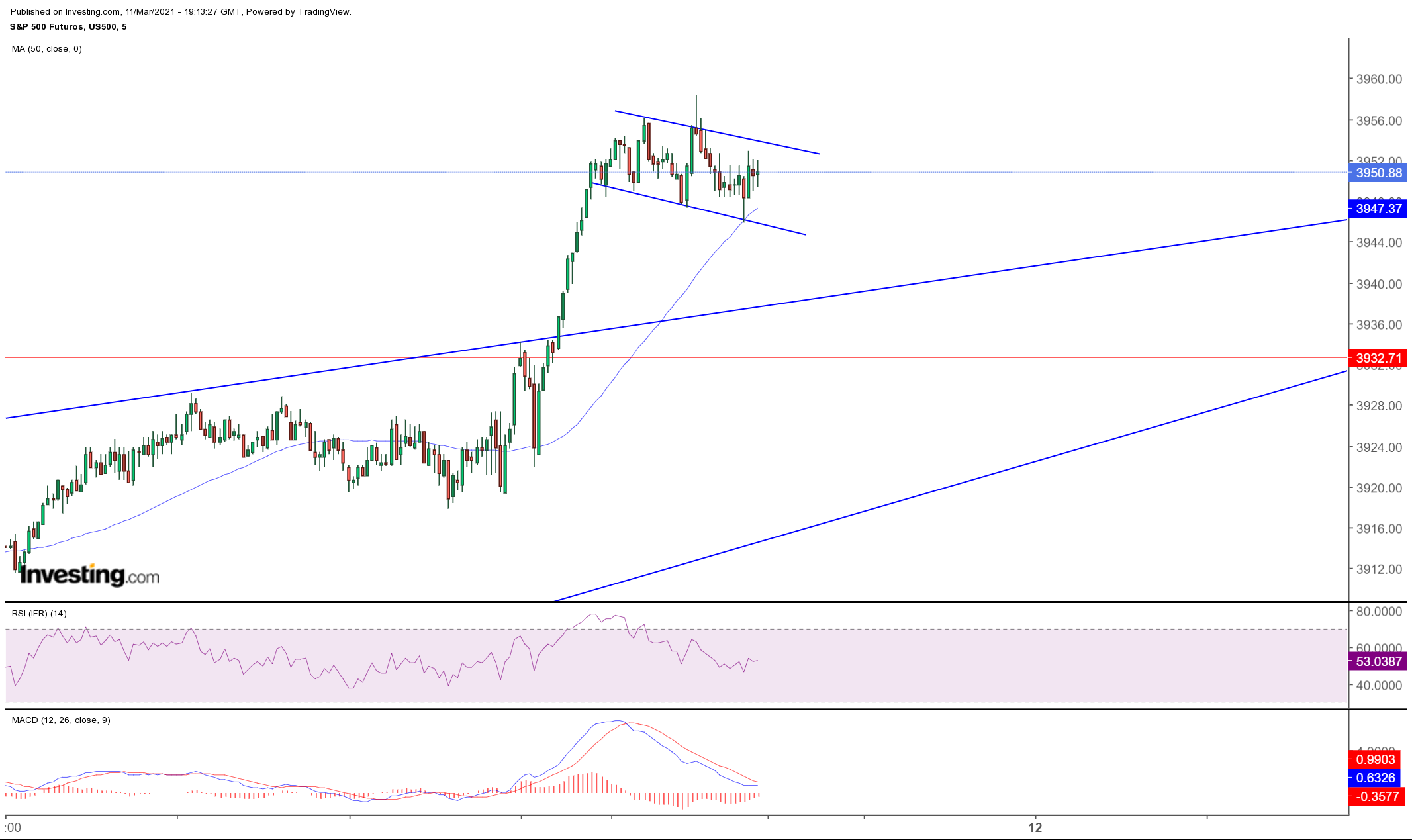 Acho que ainda pode dar um salto até aos 3935~ mas deve recuar no início da sessão. Vamos ver ao longo do dia.. para já, sem grandes surpresas.