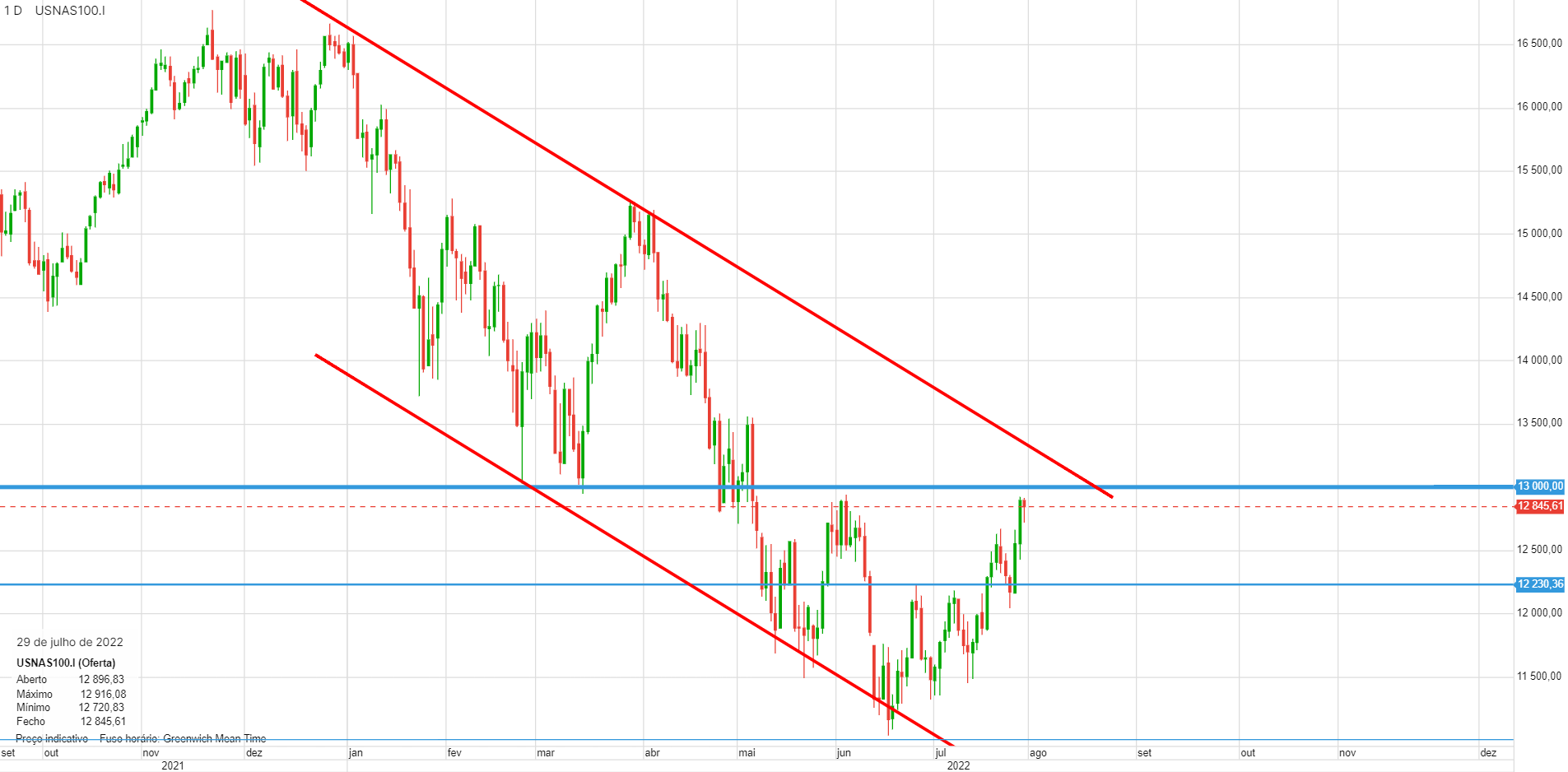 A resistência nos 13000 podia perfeitamente ser nos 12900, onde bateu hoje e fraquejou. É na zona.