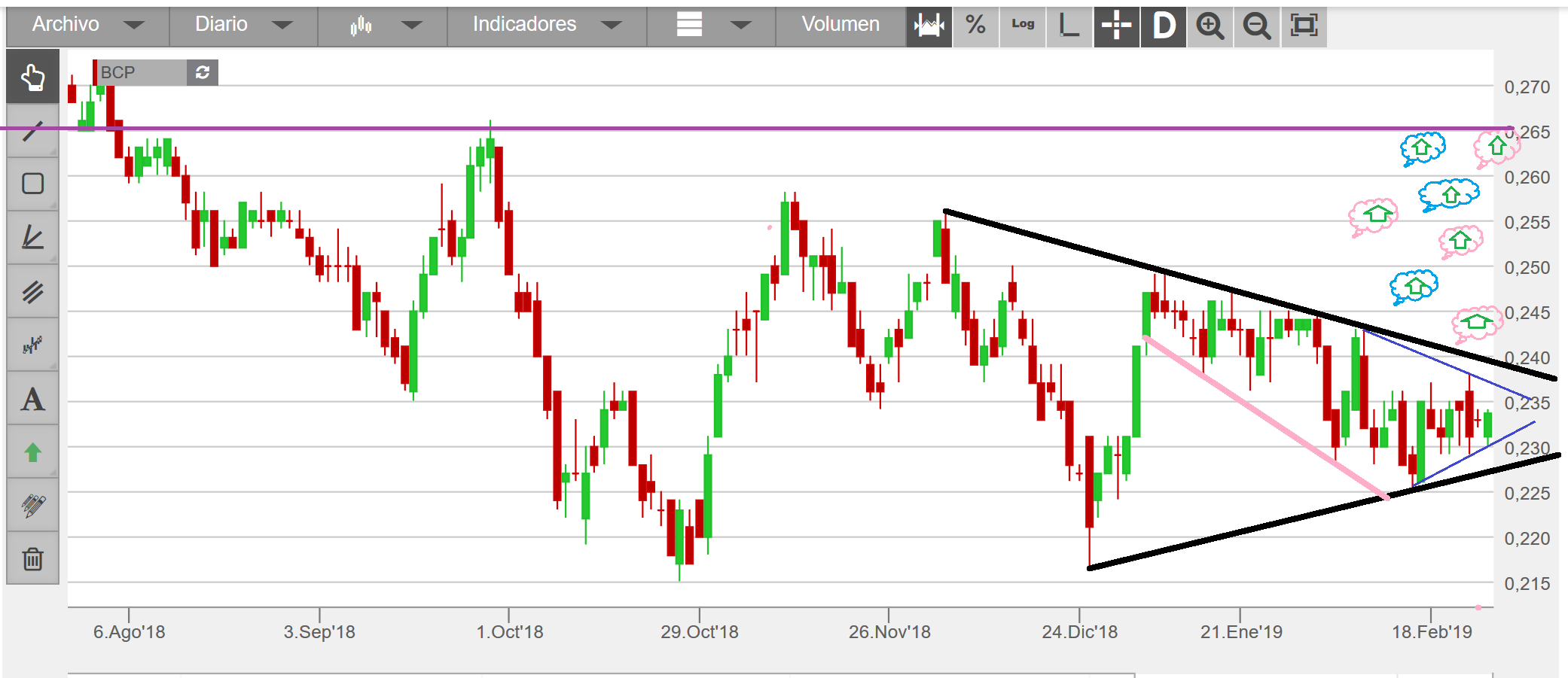 Os resultados apresentados de 2018 desiludiram os investidores, apresentando resultados abaixo do esperado pelo mercado e analistas e o titulo mantem-se numa apatia com pequenas variações percentuais e sem nenhuns sinais de inversão de curto ou medio prazo . Hoje mais uma vez está em queda sendo suportado nos 0.23 . Mantem um suporte de curto prazo na zona 0.22 – 0.23 mas sem nenhuns sinais de querer inverter a tendência descendente com 1 ano. Enquanto não quebrar em alta a zona 0.2450 - 0.25 , não tem perspetivas de valorização significativa e de êxito para entradas mais fortes .