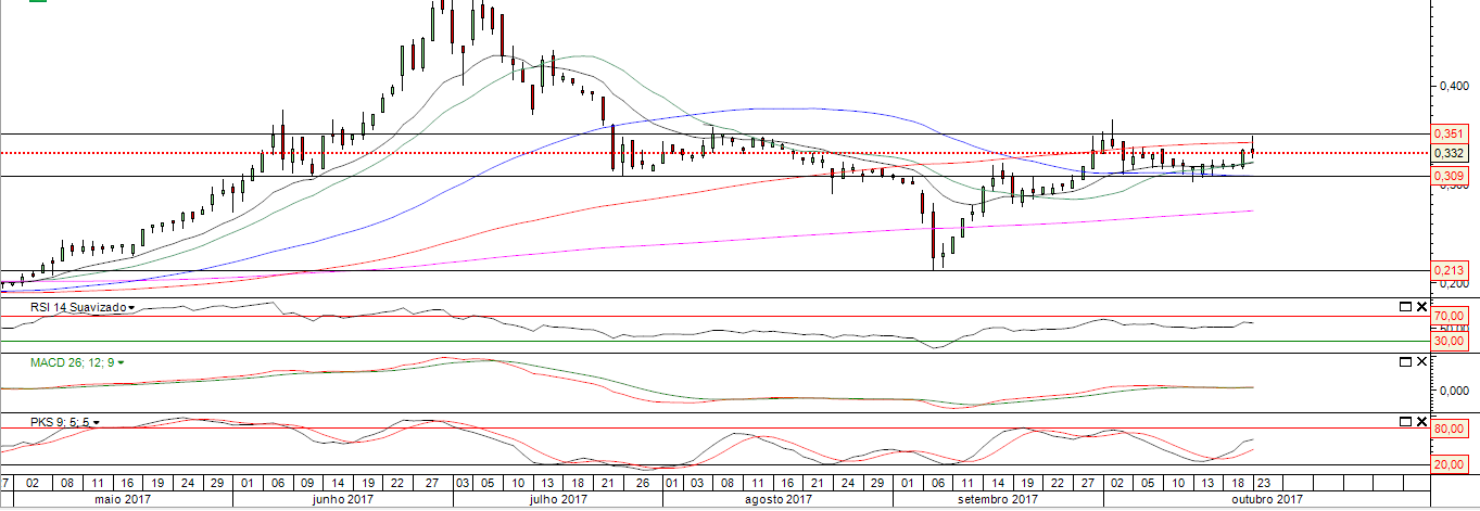 Hoje prepara-se para fechar em maximos, que é nos 0.335€, e bate no cimo do triângulo.