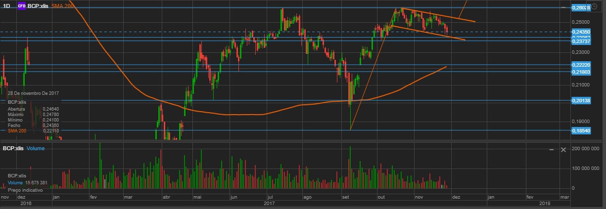 O BCP vai andar por aqui até, de repente, dar um salto importante. Esperamos pelas restantes subidas de ratings que são importantes para os bancos.