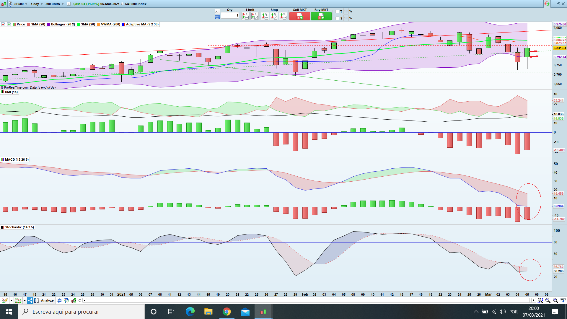 A possibilidade do Spx ir de novo para cima ´é elevada, até à proximidade de 3900 pontos parece-me ser um movimento possível.