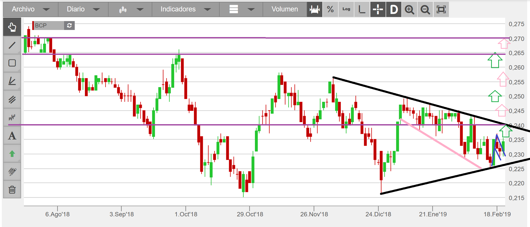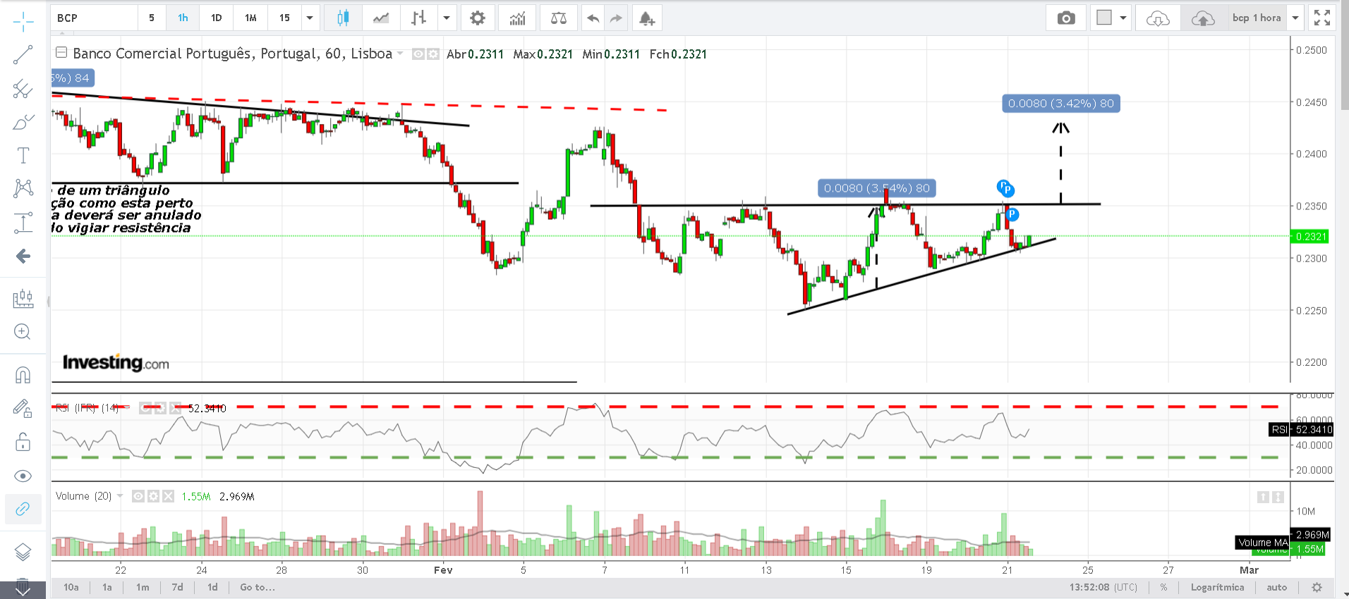 bcp acima de 0.235 tem potencial vamos aguardar enquanto mantiver naquela ltd. a segurar o preço