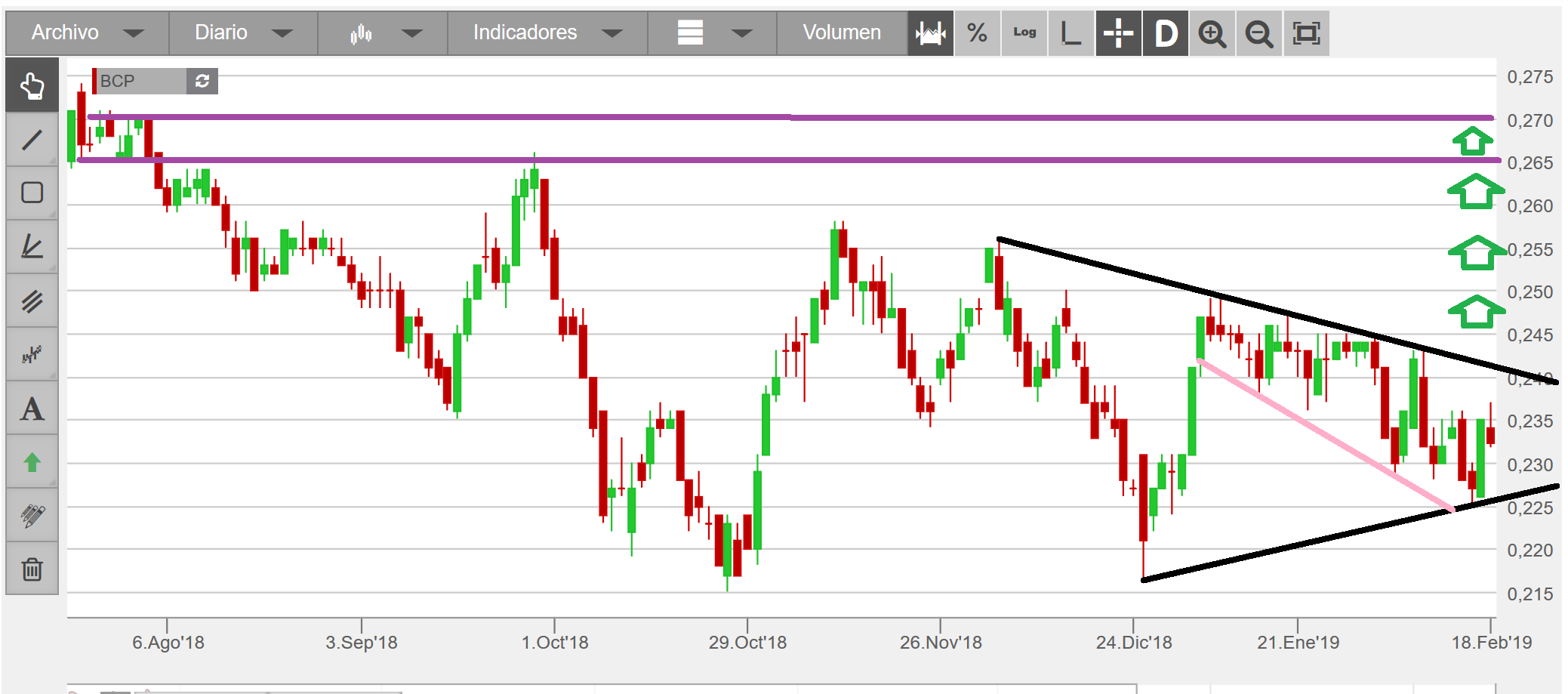 Eu dei a razão no gráfico, mas então eu explico, é que dentro do triângulo está uma cunha, esta figura da análise técnica significa "alta". Alta p o BCP. Quanto à simplicidade do desenho é simples: Não complicar o que é simples.
