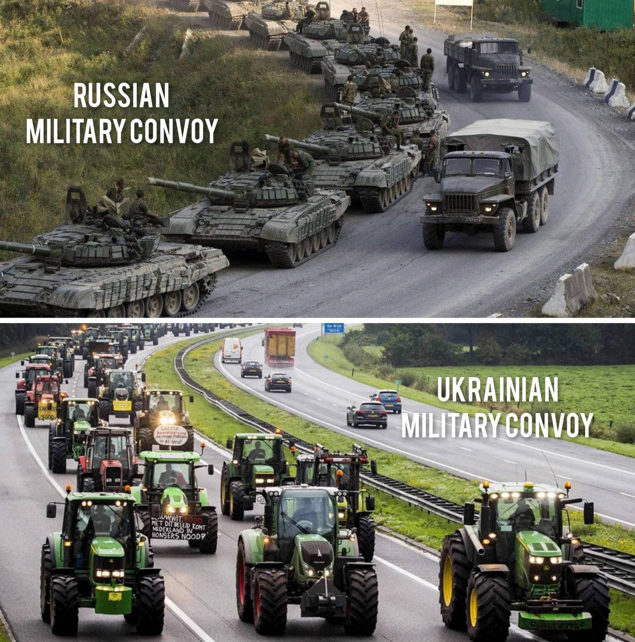 Memes de tratores ucranianos já se tornaram virais.