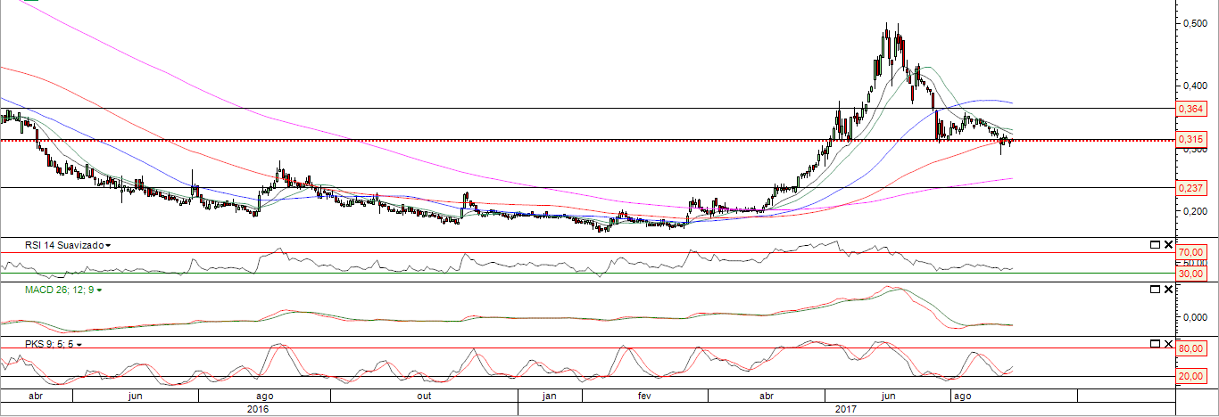 Depois da ripada matinal, parece querer voltar acima dos €0,31 que tem funcionado como suporte.