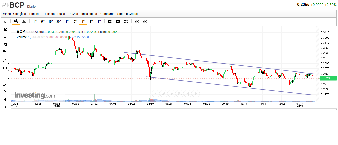 NaoSei Escreveu:NaoSei Escreveu:ativo Escreveu:Ora, aí têm (novamente) o BCP na casa dos 0,22 euro. Penso que, a prazo, a sua cotação continuará a descer. Não esquecer que a tendência descendente está lá ...