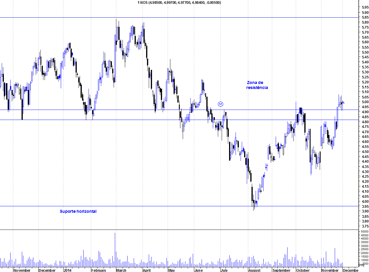 Apesar deste bom momento da Nos a acção encontra-se agora junto à zona de resistência entre os 4,8 e os 4,87 euros, o que acabou por travar a subida da acção. Por isso, em termos de curto prazo, para quem está de fora, é preferível esperar por um sinal de força que seria a quebra desta resistência do que entrar numa altura em que as probabilidades de uma retracção são grandes.