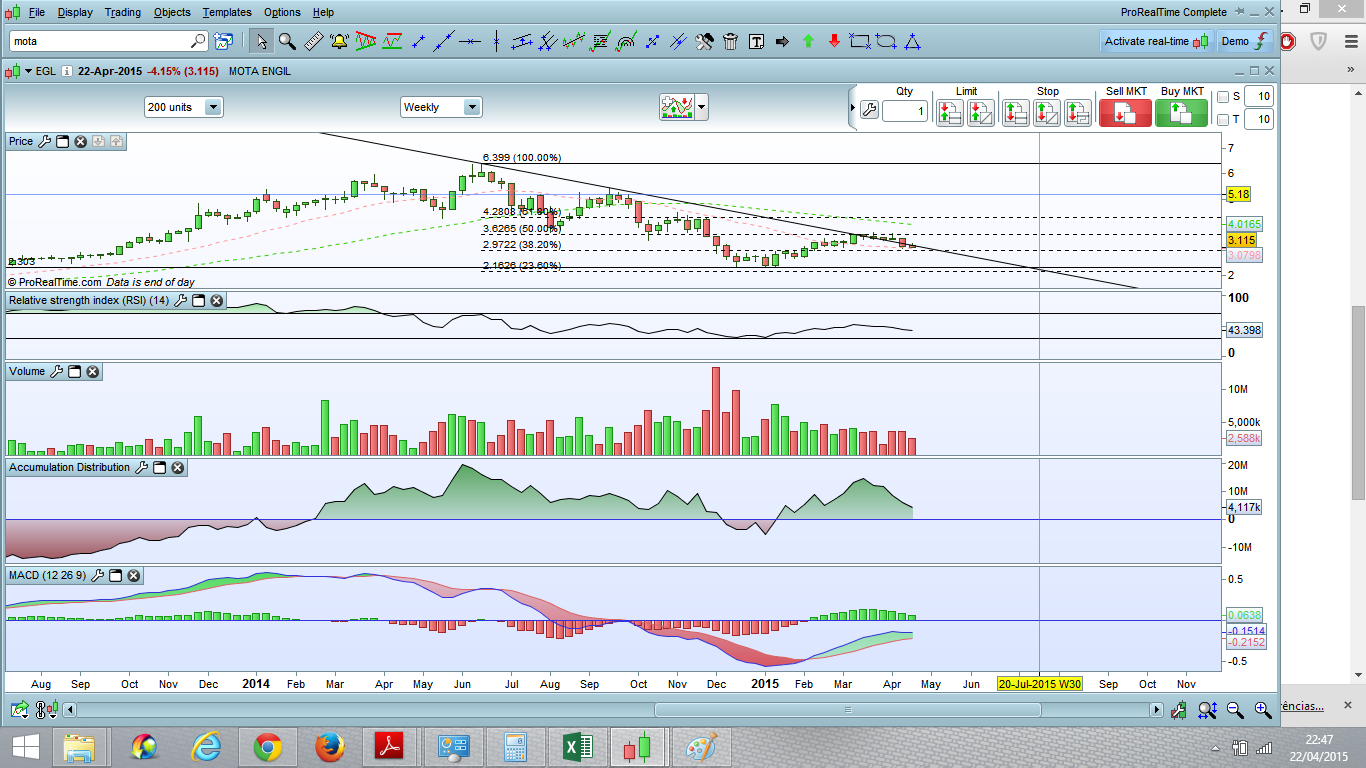 Na minha opinião os 3,00 serão o fim da linha para as quedas da Mota. Corresponde aos 50% de Fibonacci e a forte divergência que está a formar no 1h e 4h parecem confirmar que a Mota aterrou.