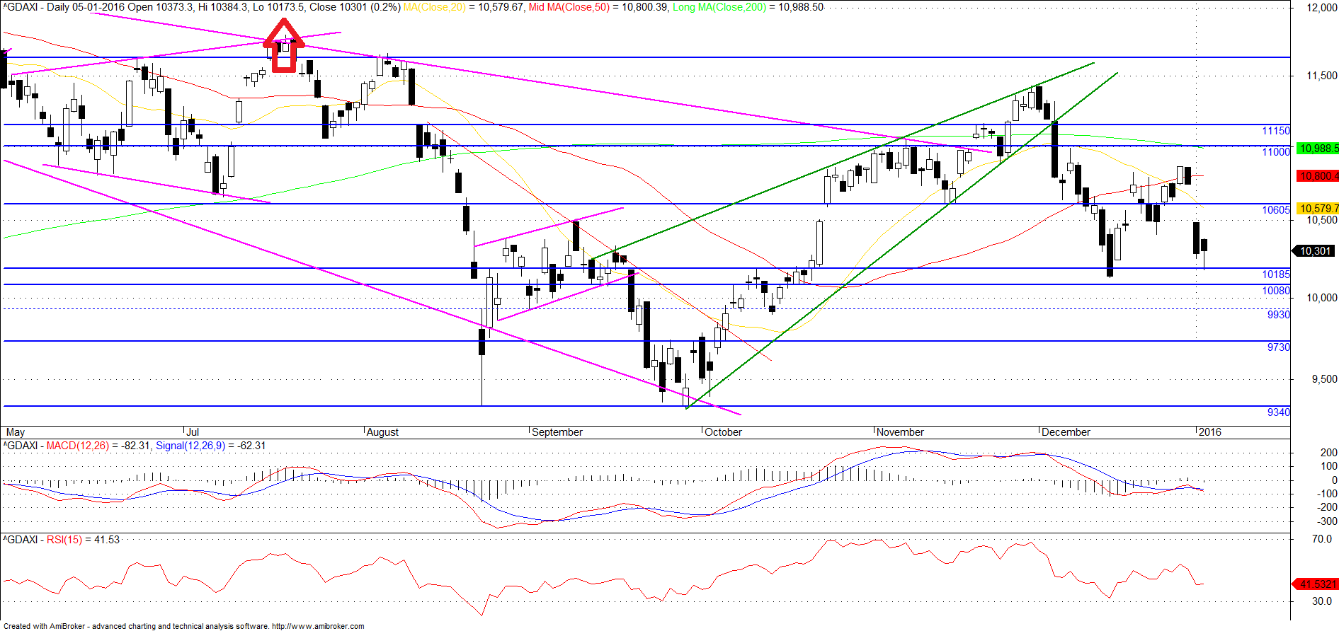 Presumo que após a abertura, dada a volatilidade, deverá haver uma tentativa de subida sem fazer higher highs. Se acontecer, aproveitar para meter curto. Se após abertura, o Dax for por aí abaixo tout court, sair após fazer lower low pois vai haver tentativa de recuperação.