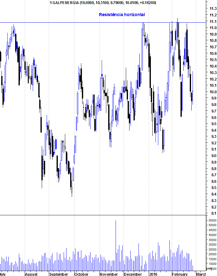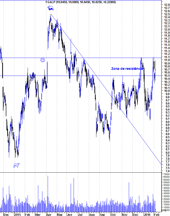 Desde o final de setembro do ano passado que a Galp tem estado numa tendência altista, formando um canal, isto depois da confirmação do rompimento da Ltd que vinha desde meados de maio 2015.
