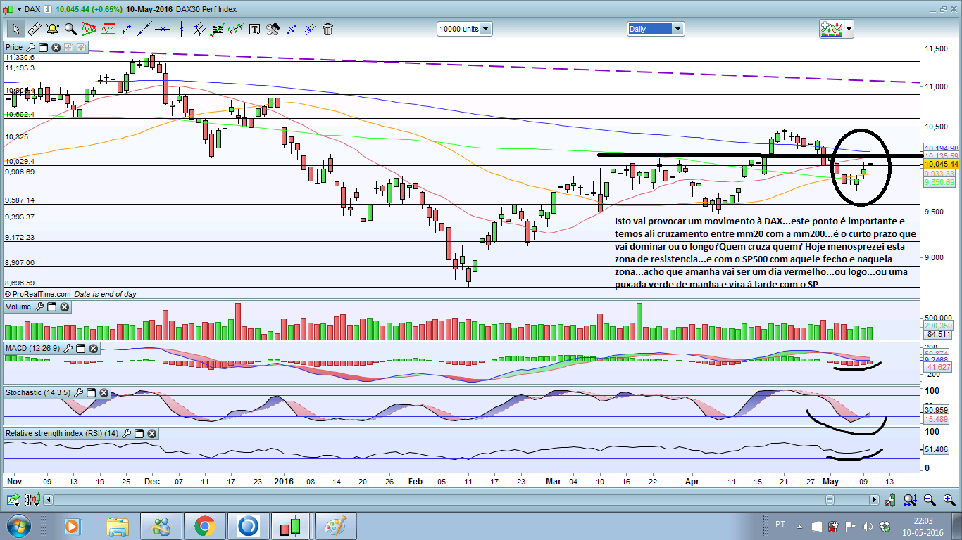 Na realidade parece que o caminho é para cima, á maneira do DAX para nos dar cabo dos nervos, mas para cima. Olhando para os gráficos, independentemente das estações em que pode parar (resistências) gostava de ver o DAX a bater os 10500 outra vez.