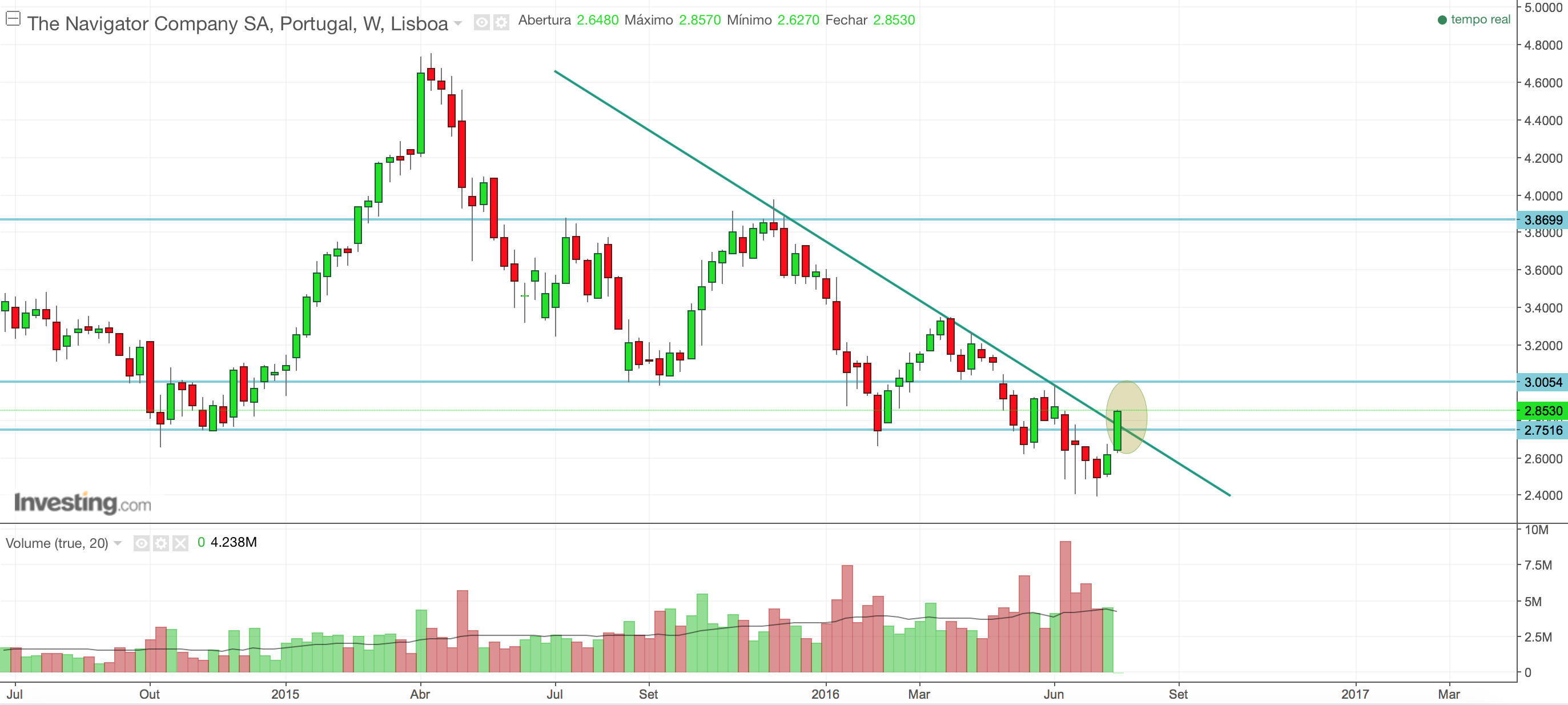 Para mim se tiver um fecho semanal convincente acima dos 2,77€, pode ter invertido o Bear Market (ver linha de resistência importantíssima no gráfico semanal).