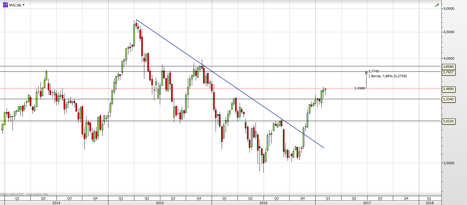 Mas no semanal poderemos ter aqui um excelente exemplo de futuro trade...