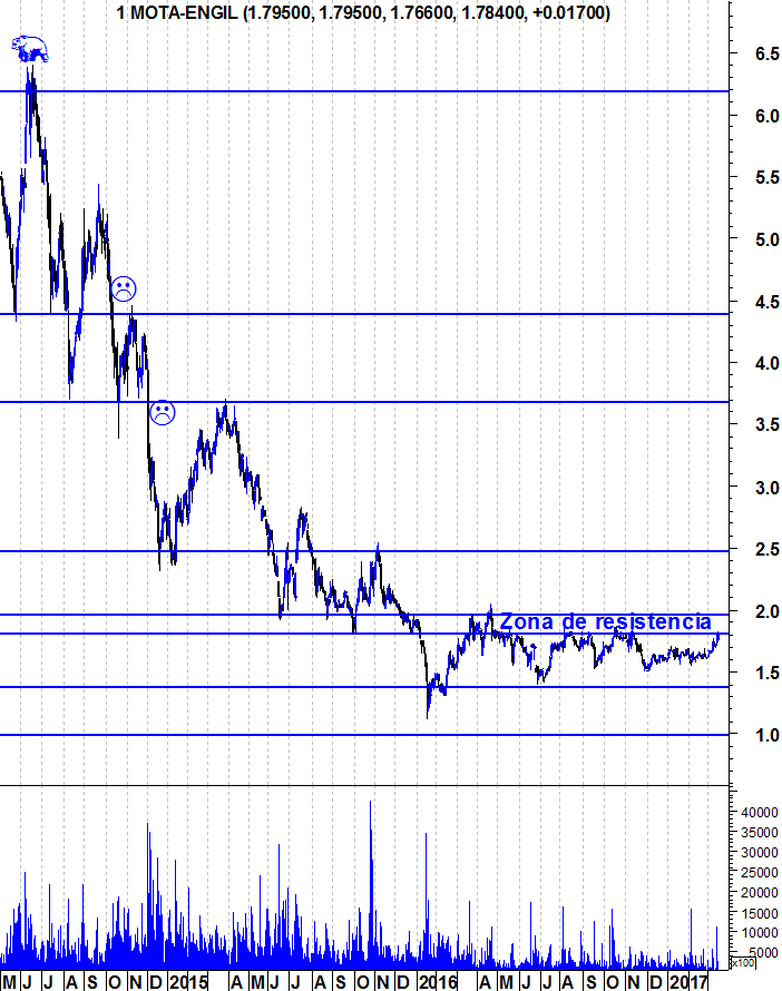 Aqui ficam os gráficos actualizados da Mota-Engil numa altura em que se encontra a namorar a sua decisiva zona de resistência.
