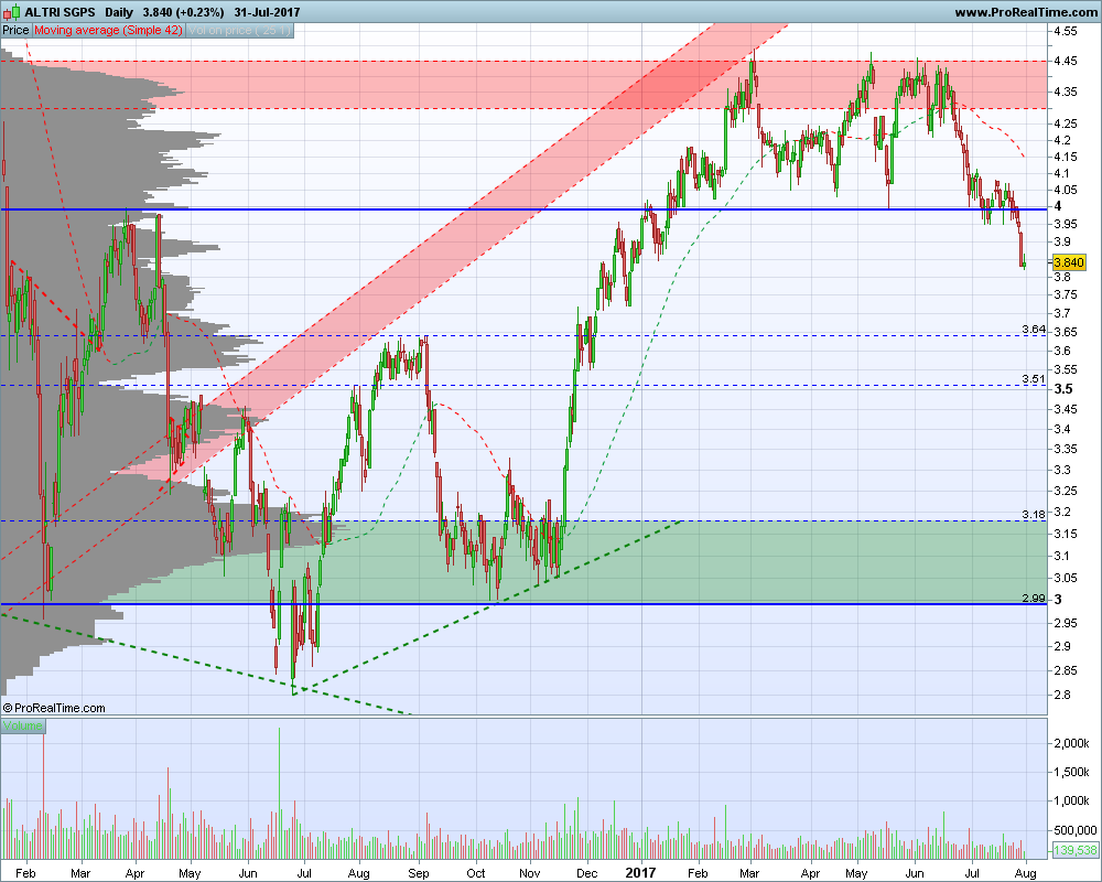 Se vejo suporte ANDAR a testar 4 euros com dificuldades e vejo análise com mas tendências para próximos meses já não entro porque probabilidade e mercado começar refletir expectativas piores e vir muito abaixo do suporte.