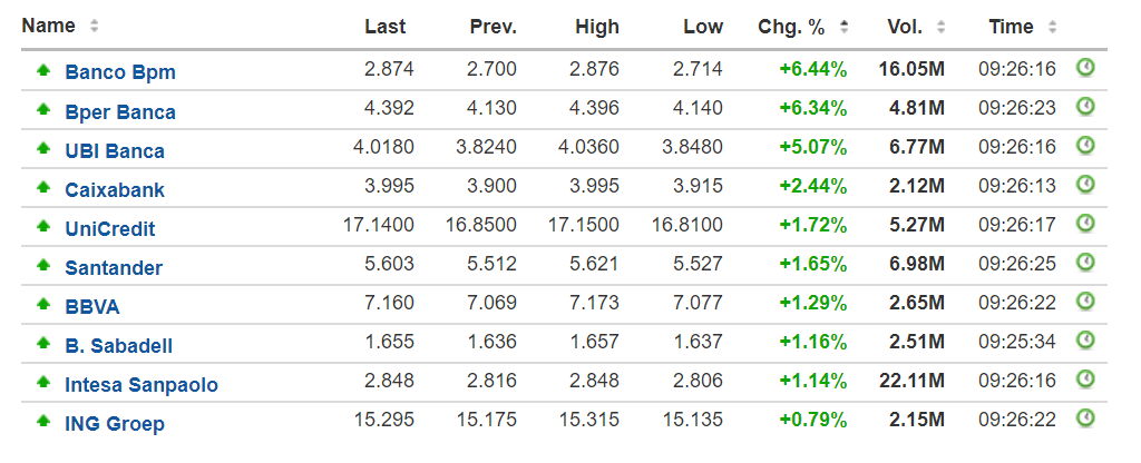 Até digo mais , a Banca na europa está com GRANDE força e aqui a soneca neste nível sem interesse para o mercado poderá continuar .