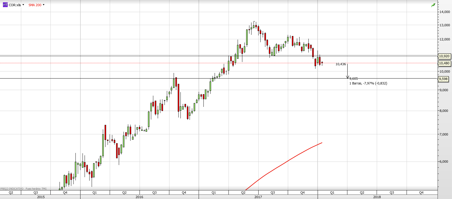 Corticeira tenta uma pequena recuperação , mas olhando para o gráfico , já teve melhores dias com gráfico em queda desde os 13 euros .