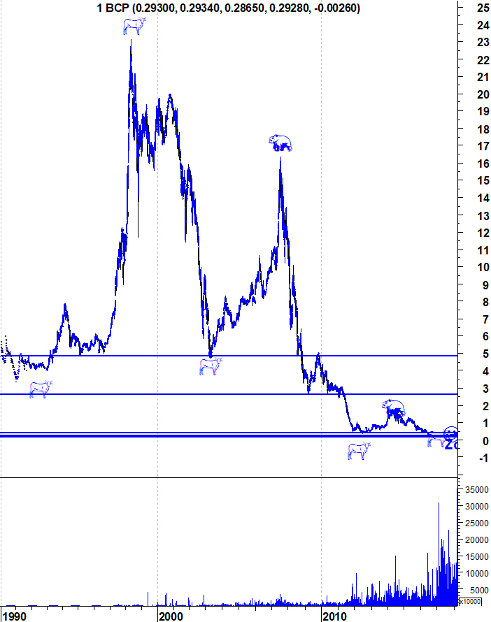 Olhem para o gráfico do BCP. Os números redondos têm tido alguma influência? Nenhuma! O BCP foi acima dos 0,30 isso serviu de algo para agora evitar a correcção? Não. Veio abaixo há uns dias atrás, isso impediu de voar? Não.