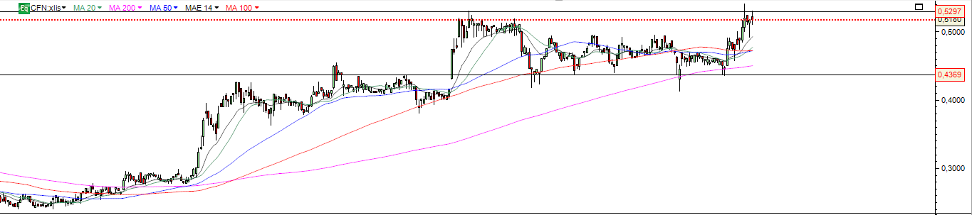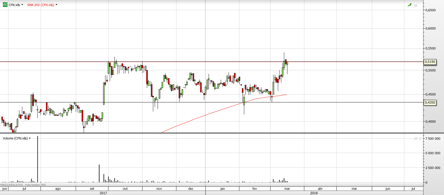 Se não houver nada no contexto internacional que prejudique o que se passa nos mercados, esta semana pode ser bastante promissora nesta cotada. Depois dos 0,53 lá vem os algoritmos todos novamente...