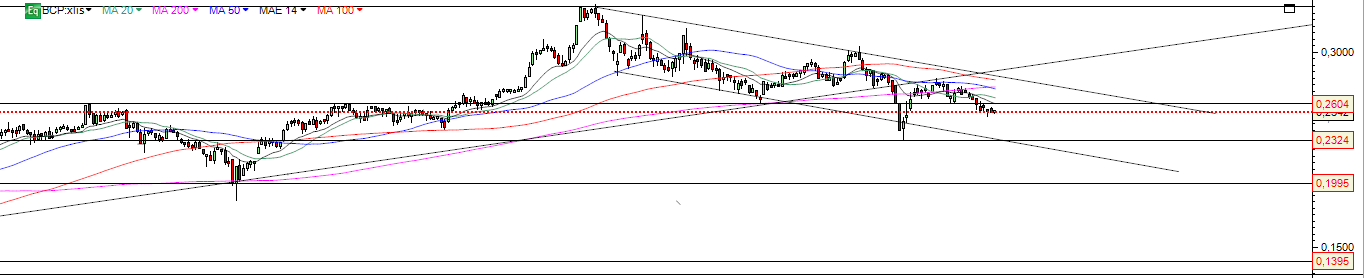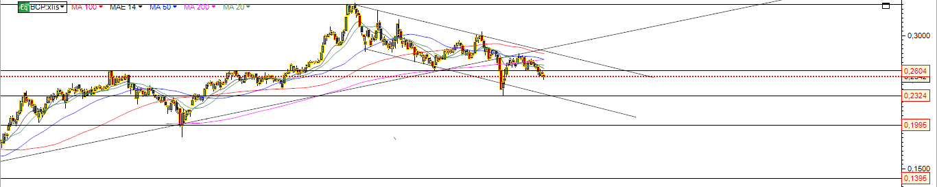 BCP hoje fechou mais uma vez , em queda e dentro da queda dos últimos dias no canal descendente devendo testar a base do canal em breve