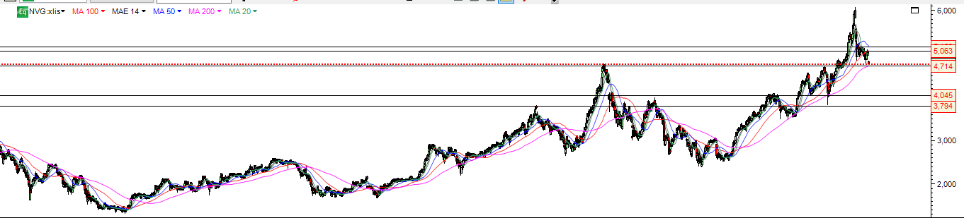 AGora enquanto se mantiver abaixo da MM200 nos 4.71 , a probabilidade maior , é o mercado continuar vendedor e ir novamente testar a zona de suporte nos 4 euros , num ritmo de queda mais moderado.