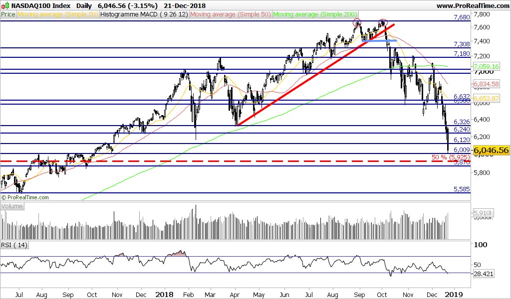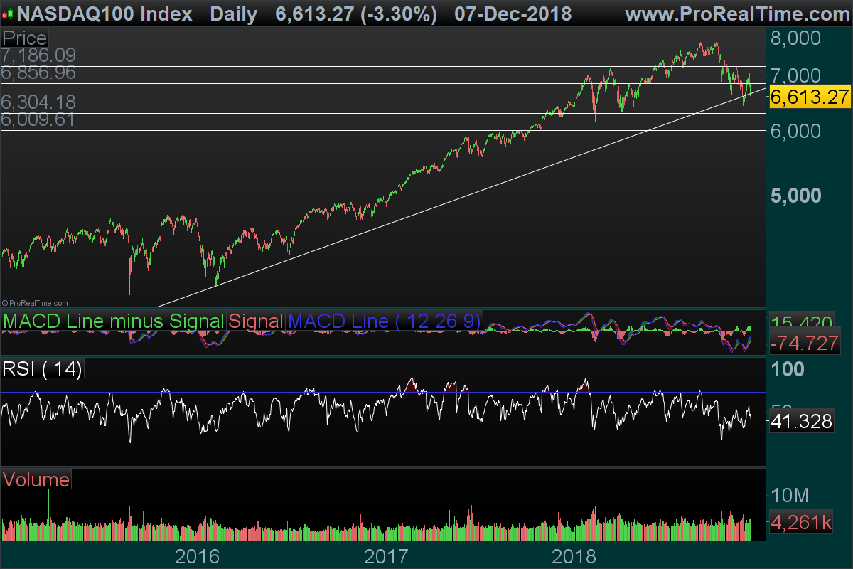 O NASDAQ é o índice que mais tem sofrido com a guerra comercial entre americanos e chineses e não opinião de muitos é um índice que já está em zona bear. Os investidores têm sofrido aqui uma correção tão forte nos seus investimentos que um eventual ‘crash’, a ocorrer, já não poderá ‘comer’ muito mais rendimento aos investidores de longo prazo.