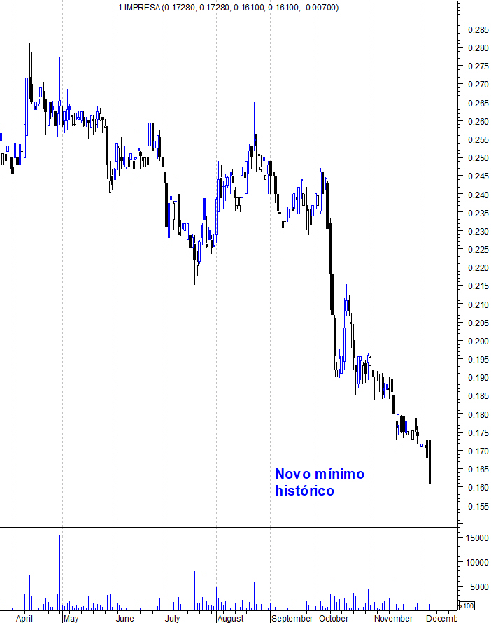 Entretanto a cotação vai de mal a pior, hoje fez novo mínimo histórico €0,155