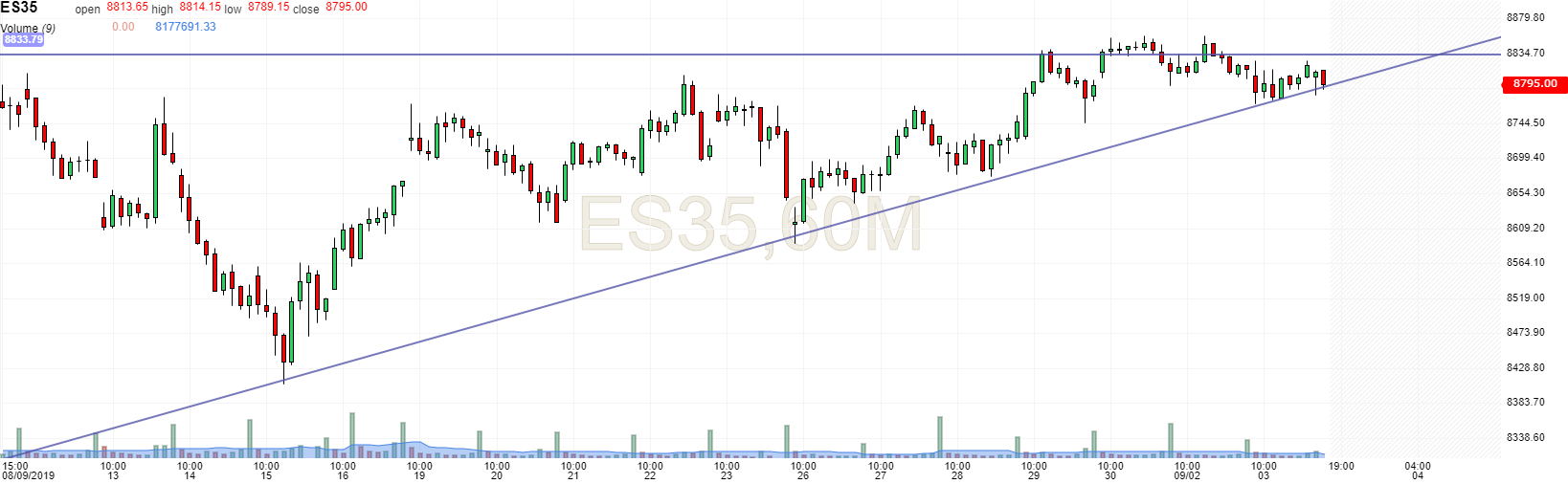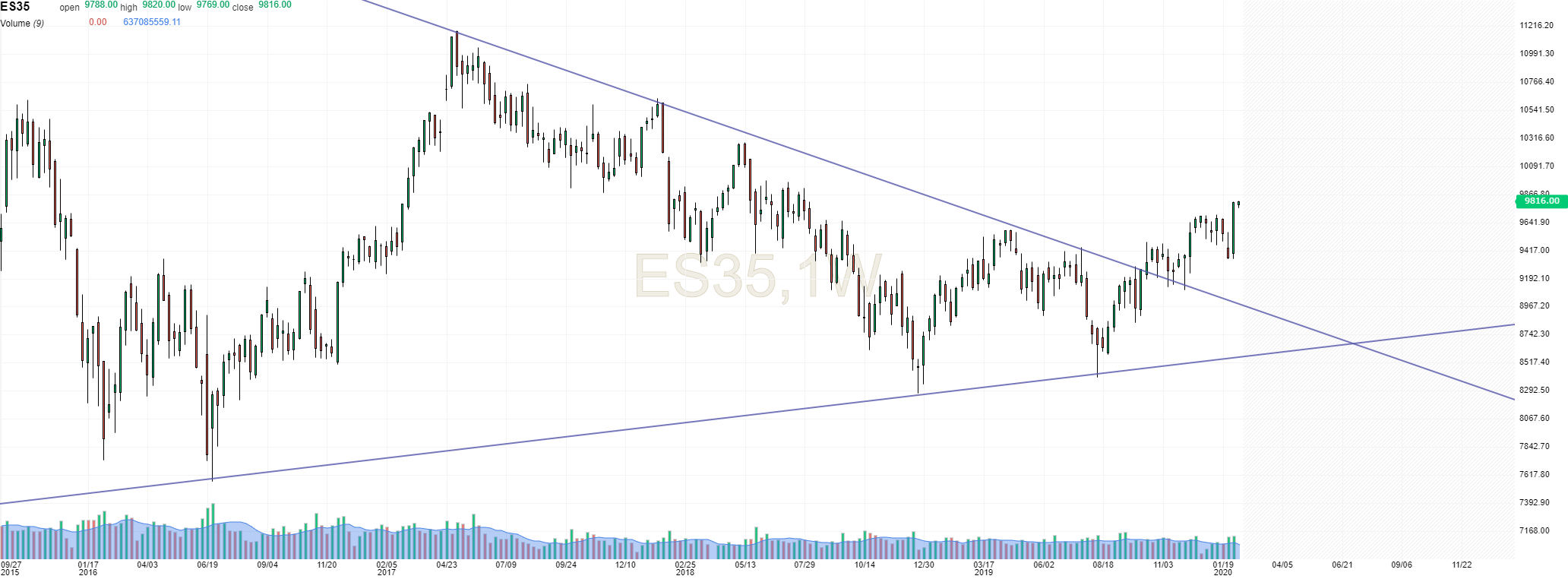 Estou curto no IBEX no curto prazo. Vamos ver se reage nos 9700.