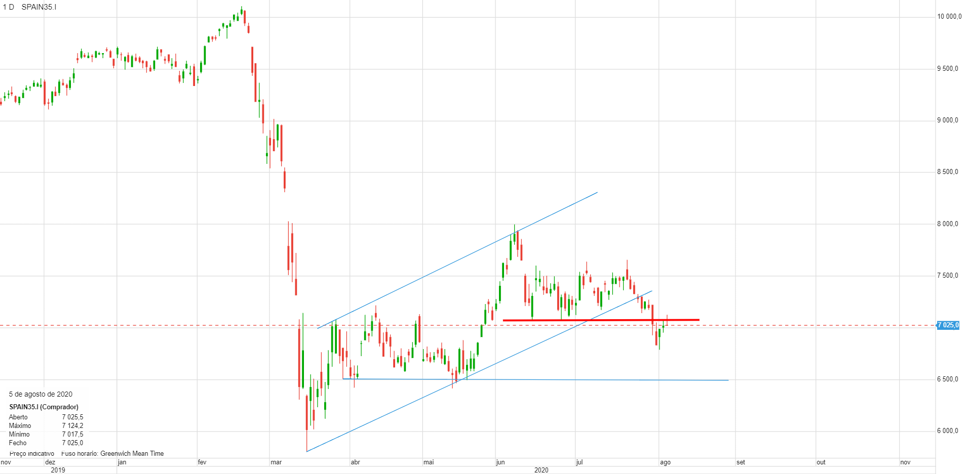 Entrada curta no IBEX, quando ele estava a pressionar a resistência nos 7080.