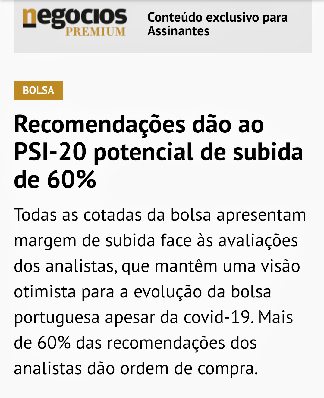 Na bolsa compras (ou vendes) hoje expectativas de amanhã. É um jogo que, às vezes, corre mal . E temos de ter isso sempre presente. Mas não podes é querer comprar ou vender, hoje, algo inimaginável ou não expectável. Coisas completamente absurdas.