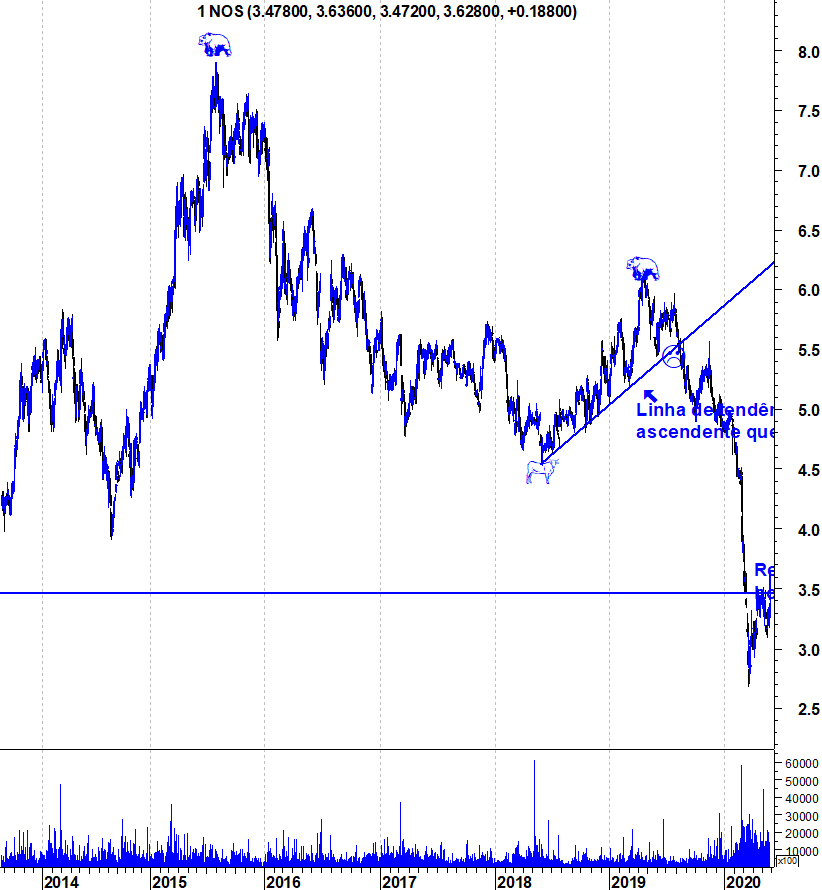 Como a NOS "detestou" o Bull market secular, talvez agora com uma recuperação MACRO e Bolsista em WWW, seja menos otimista e mais realista, esperar uma forte recuperação, em V, da cotação NOS.