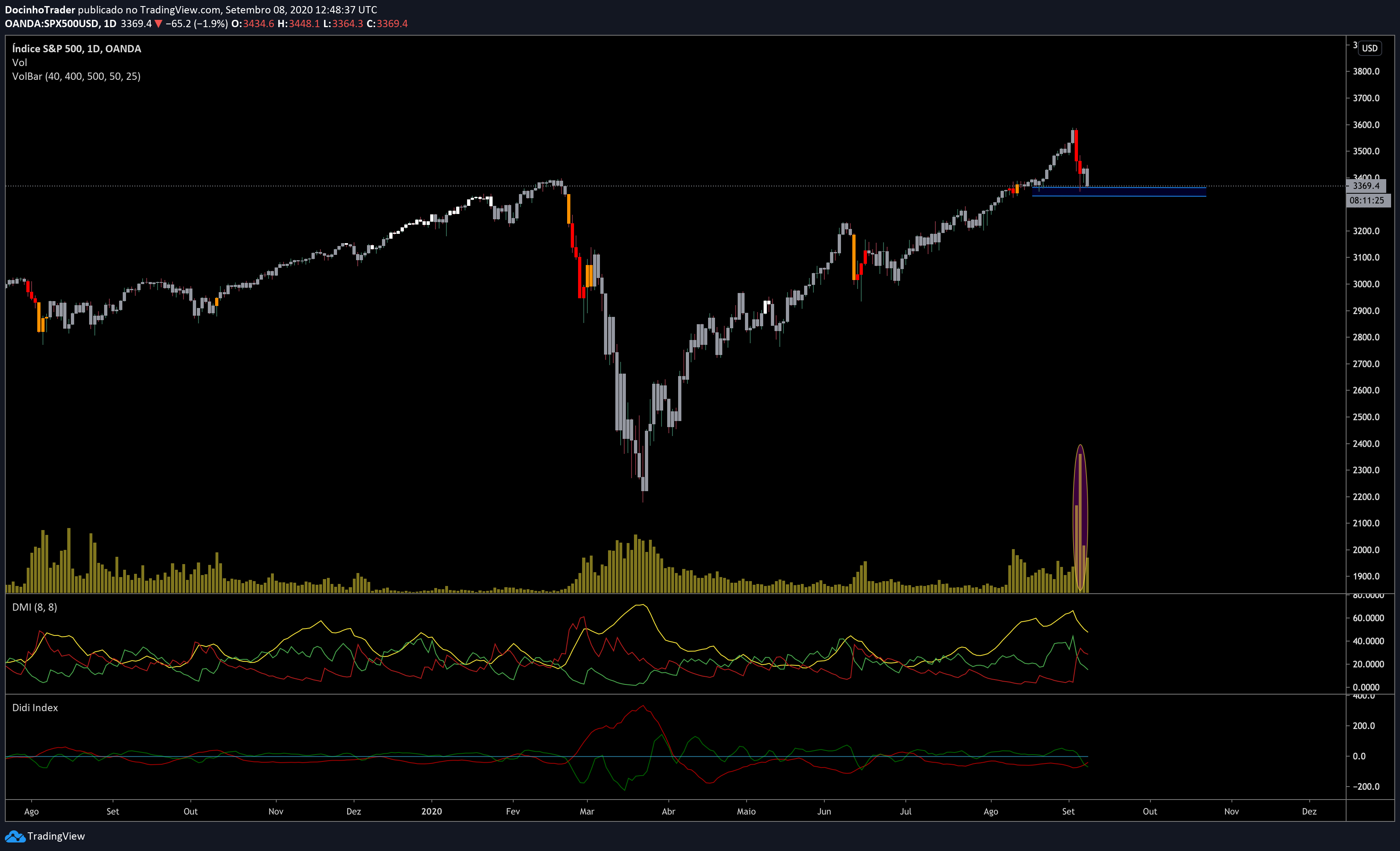 A minha proposta era mandar uns tiros short se e apenas se isto romper ali a zona assinalada dos 3360 -3330pts.