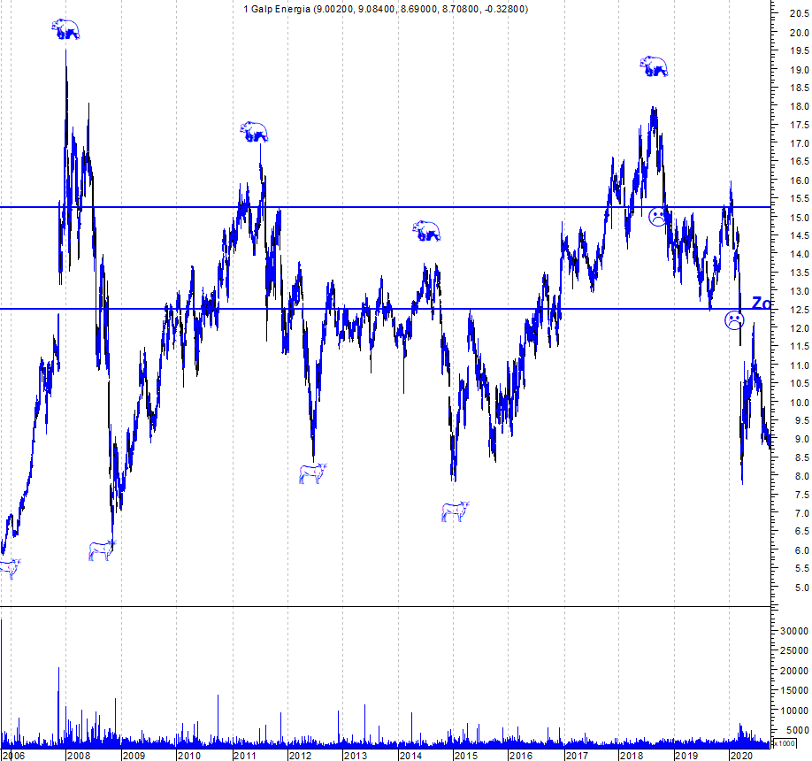 Eu sou um analista técnico que acredita que quem segue as tendências em Bolsa ganha dinheiro. Em todos os horizontes temporais, a tendência da Galp é descendente. Defendo que só quando as acções começam, a dar sinais de força quebrando resistências é que oferecem uma relação rentabilidade/risco que compense entrar nessas acções.