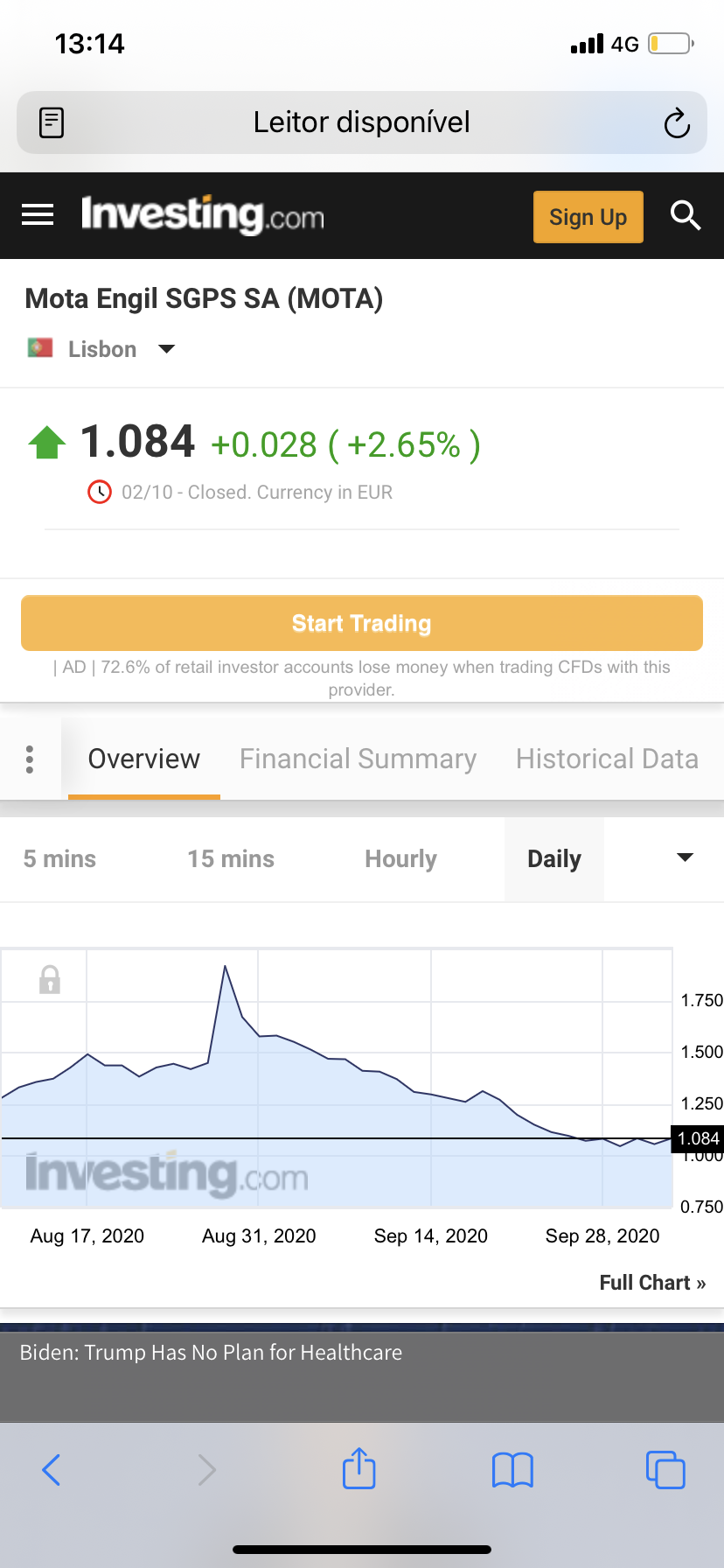 Sei que faltam os mesmos 3,3% para atingir os 1,118€ do outro dia, mas fechou em máximos, pelo que o impulso de subida pode ser maior.